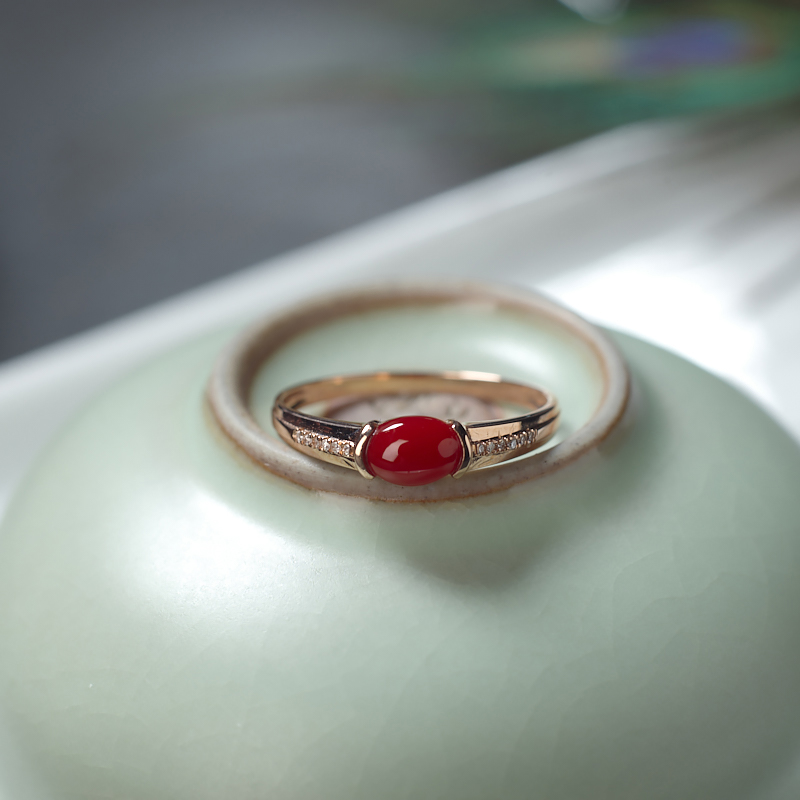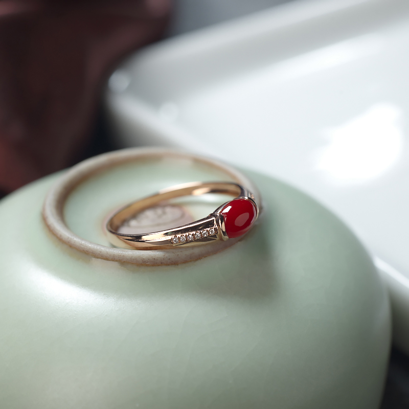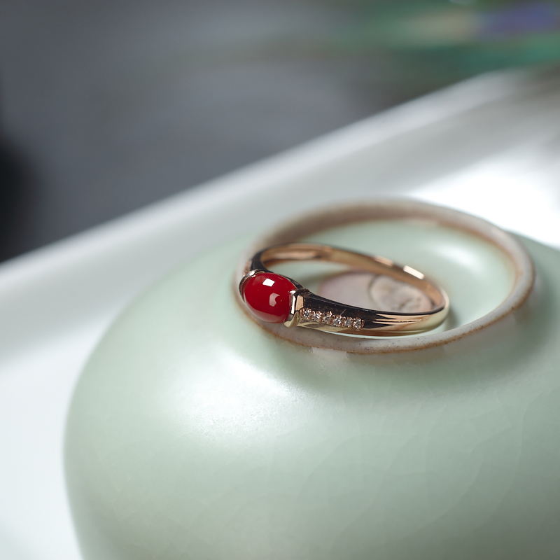 • 18K阿卡牛血红珊瑚戒指