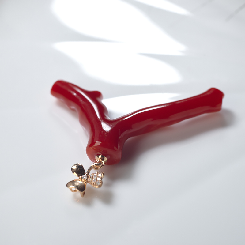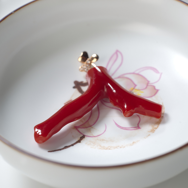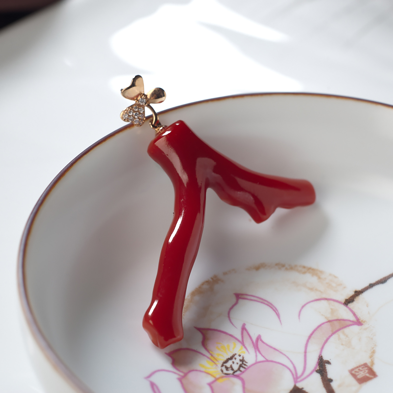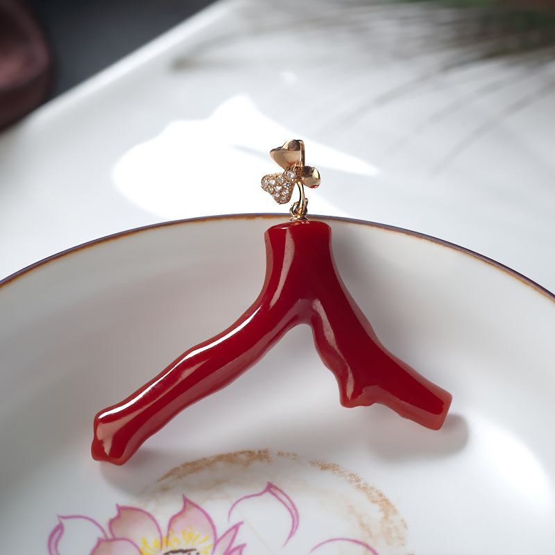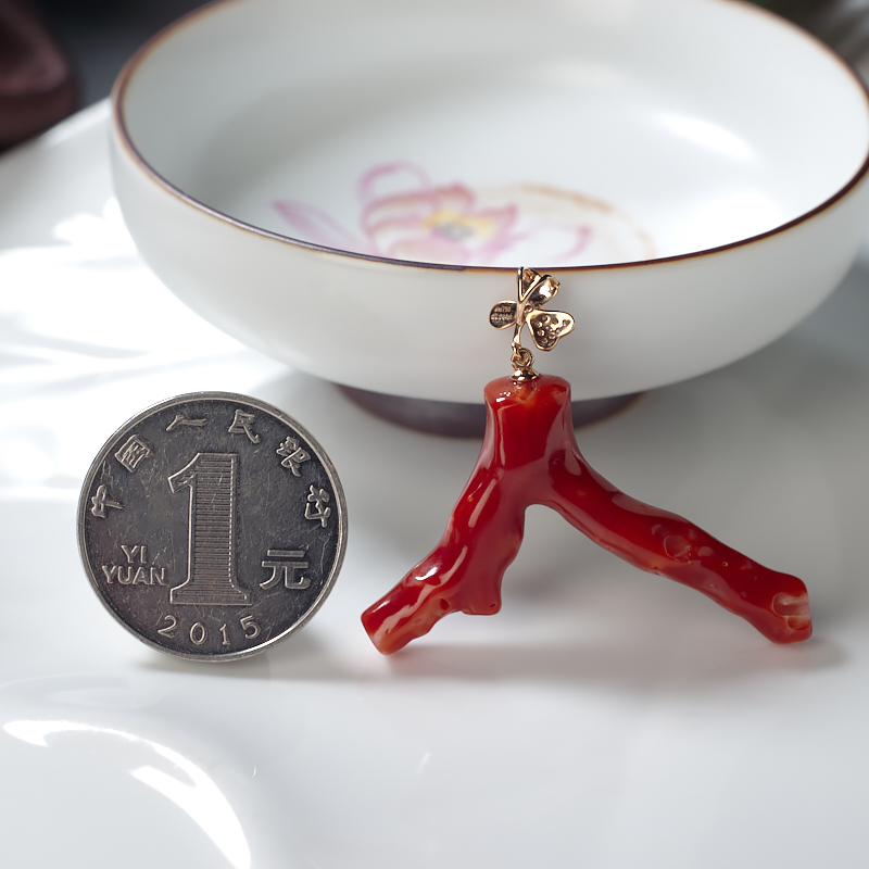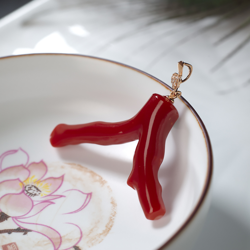 • 18K阿卡牛血红珊瑚树枝吊坠