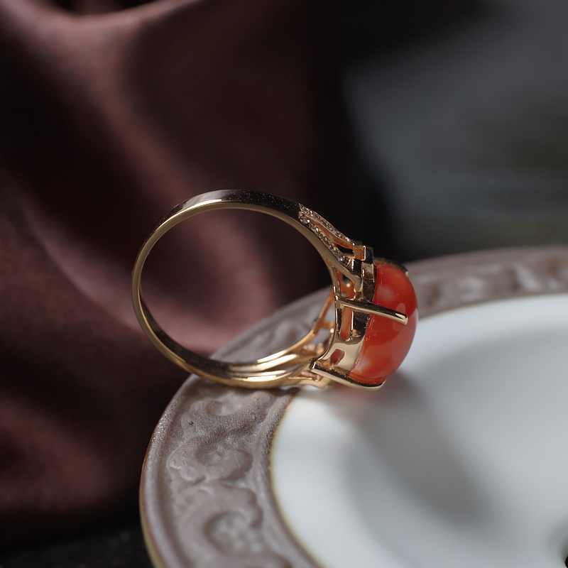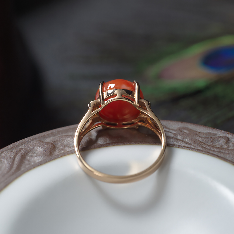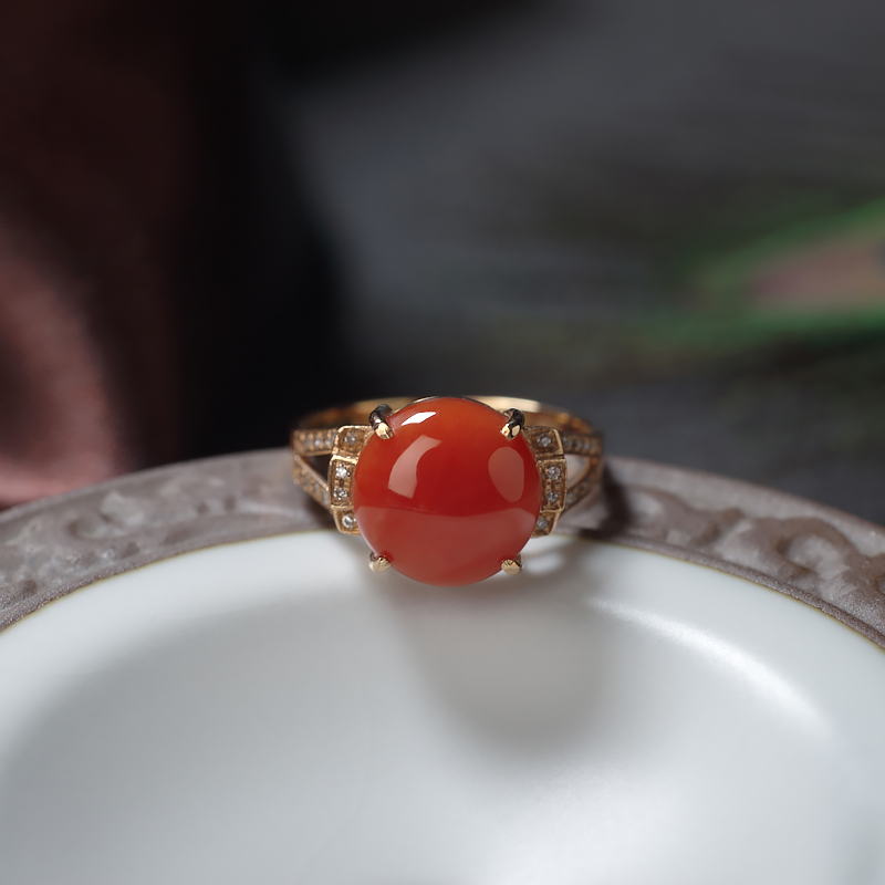 • 18K阿卡珊瑚圆形戒指