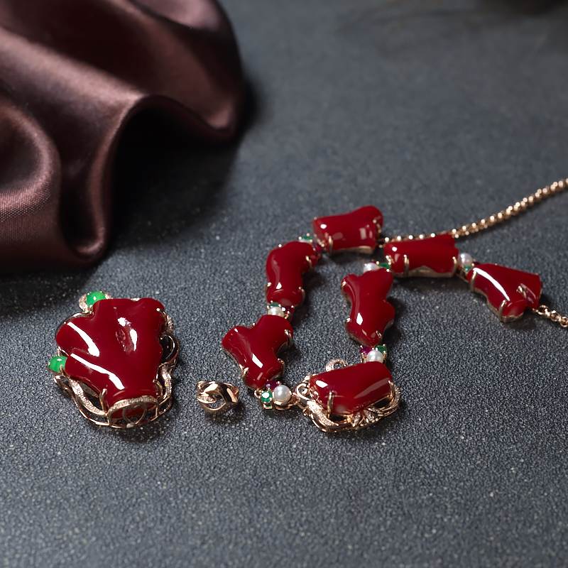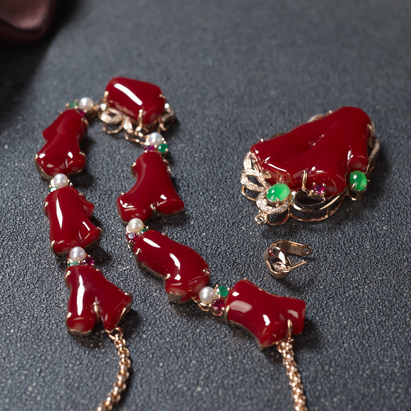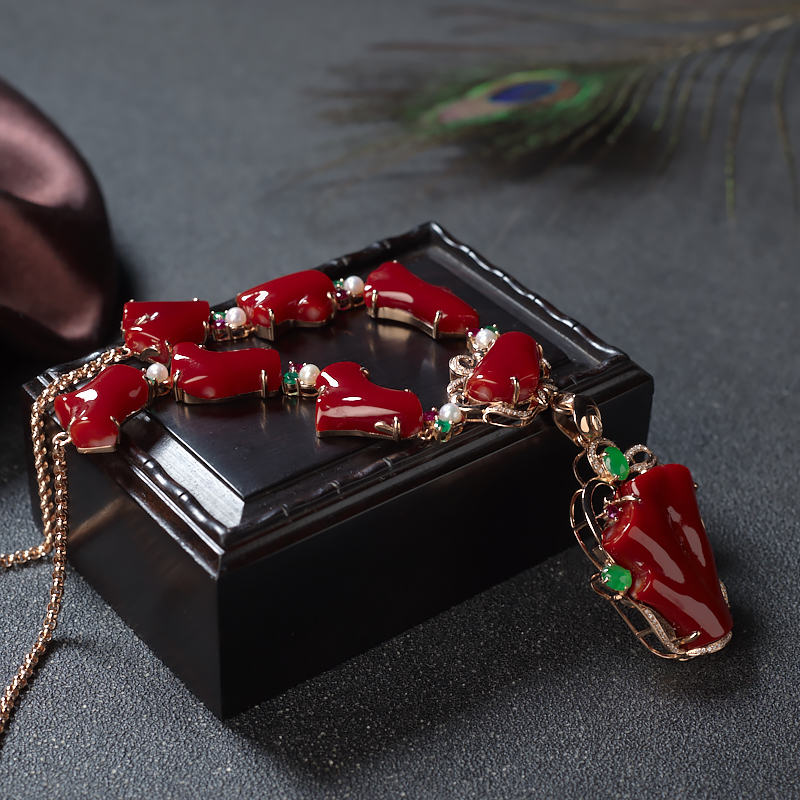 • 18K阿卡牛血红珊瑚随形两用款