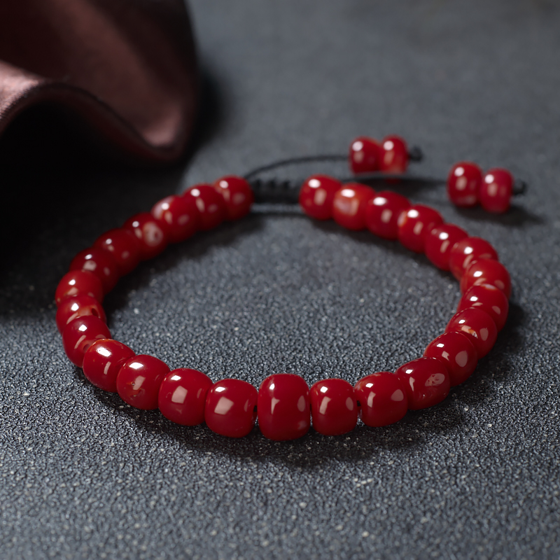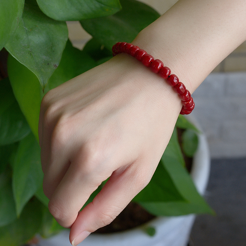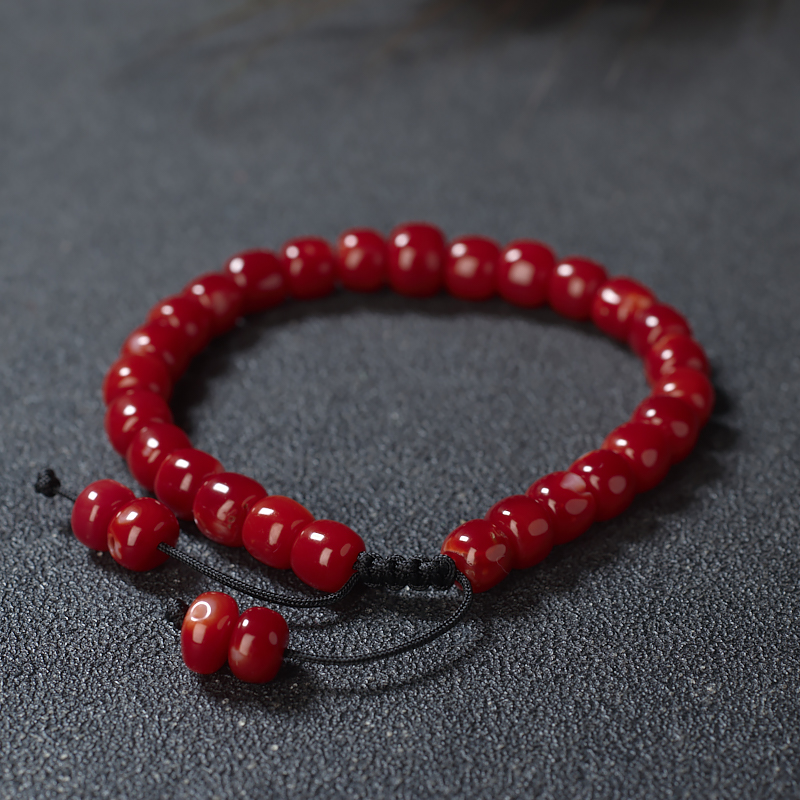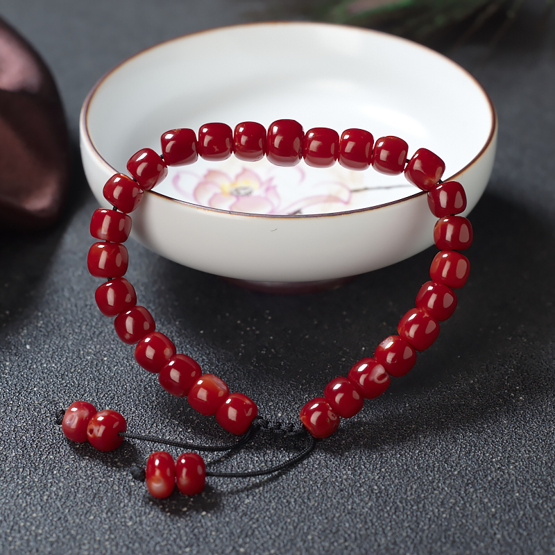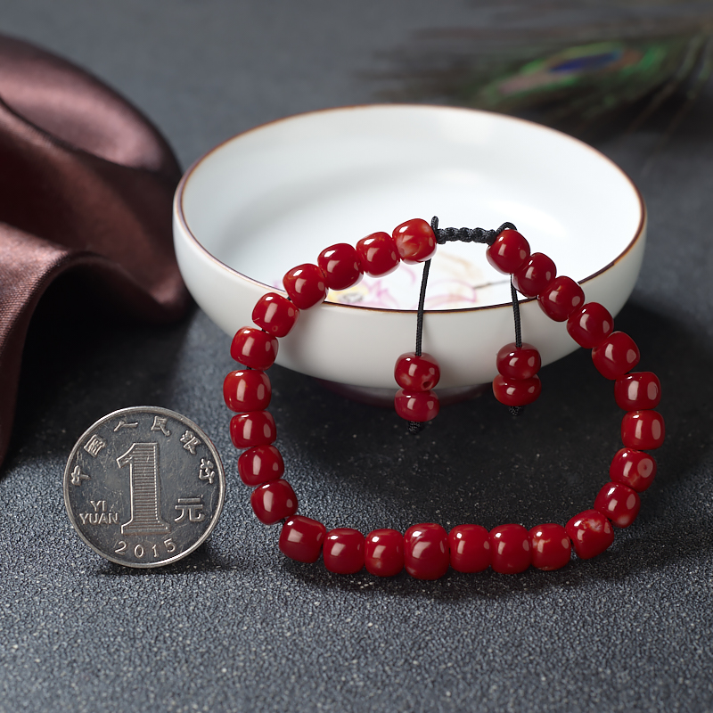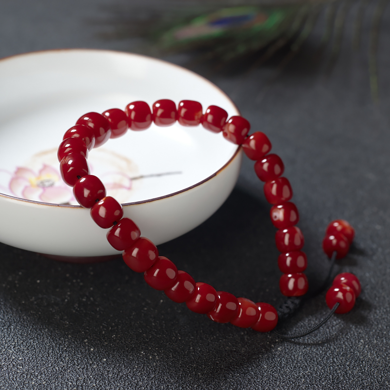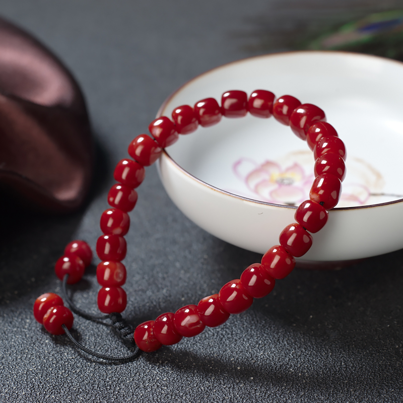 • 阿卡牛血红珊瑚桶珠单圈手串