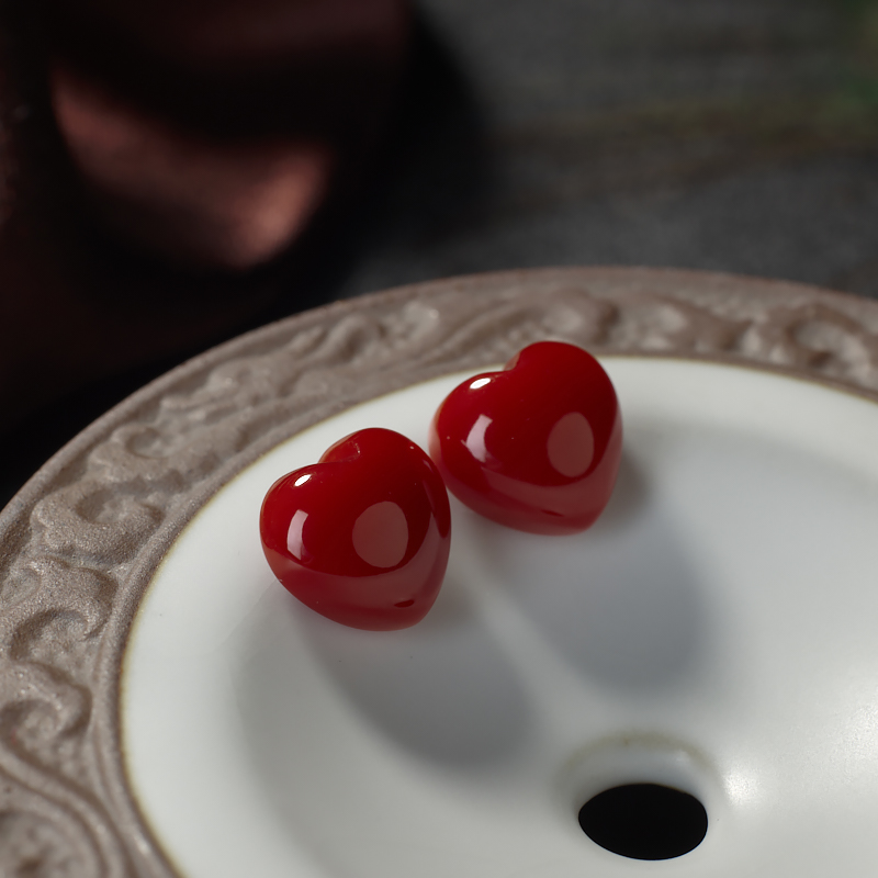 • [名  称] 阿卡牛血红珊瑚心形戒面(两件)