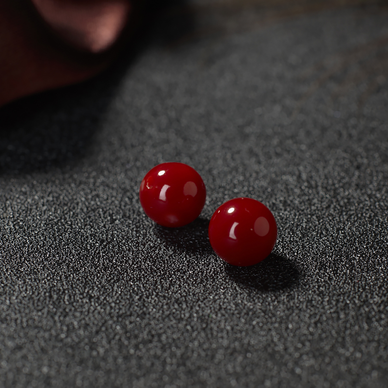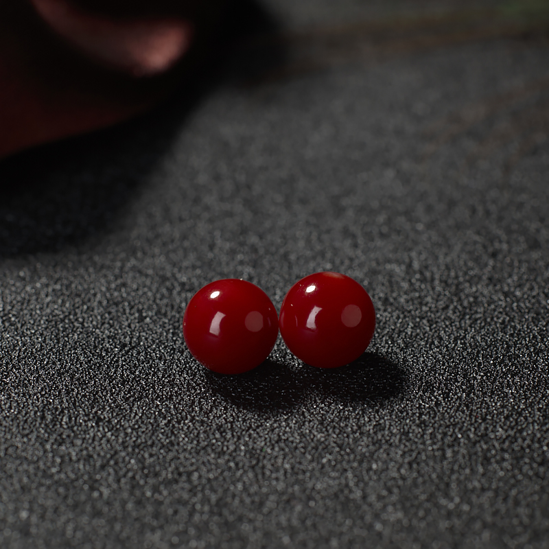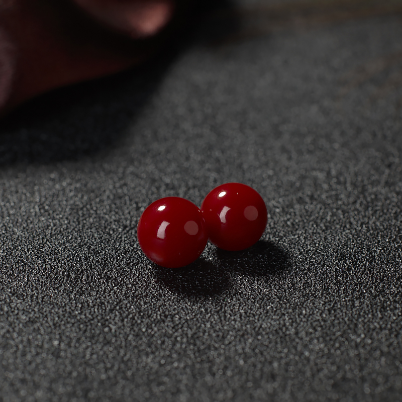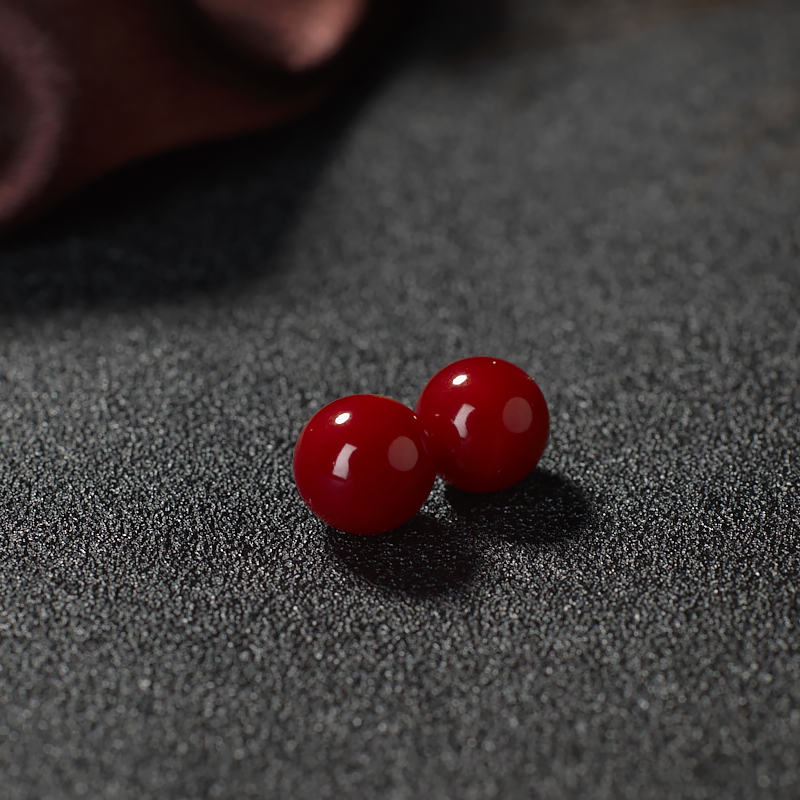 • 8mm阿卡牛血红珊瑚圆珠(两件)