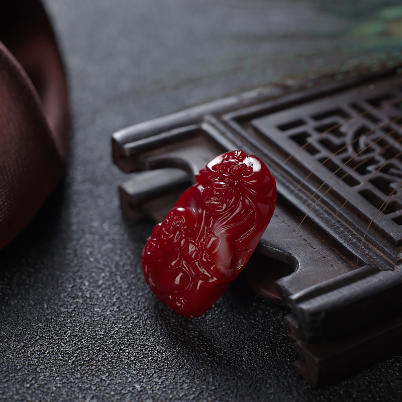 • 阿卡牛血红珊瑚弥勒佛吊坠