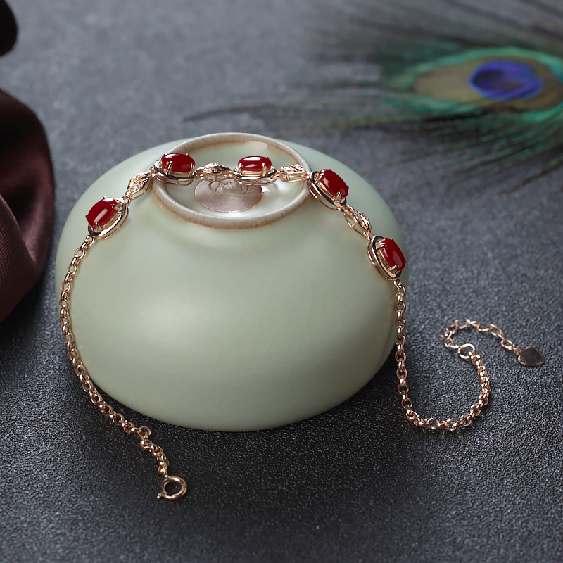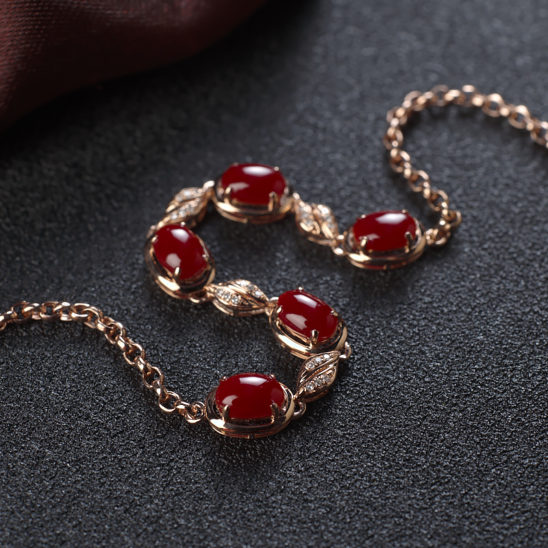 • 18K阿卡牛血红珊瑚手链