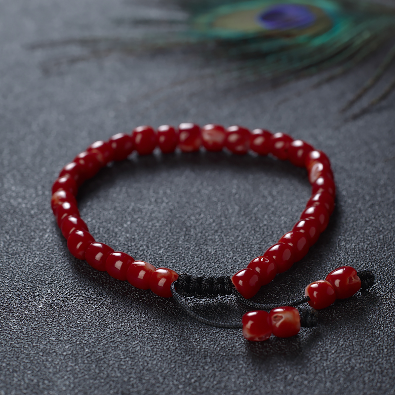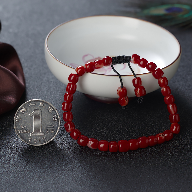 • 阿卡牛血红珊瑚桶珠单圈手串