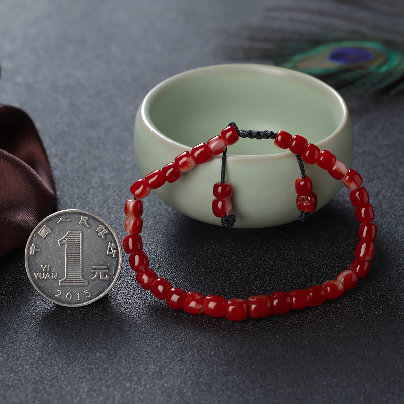 • 阿卡牛血红珊瑚桶珠单圈手串