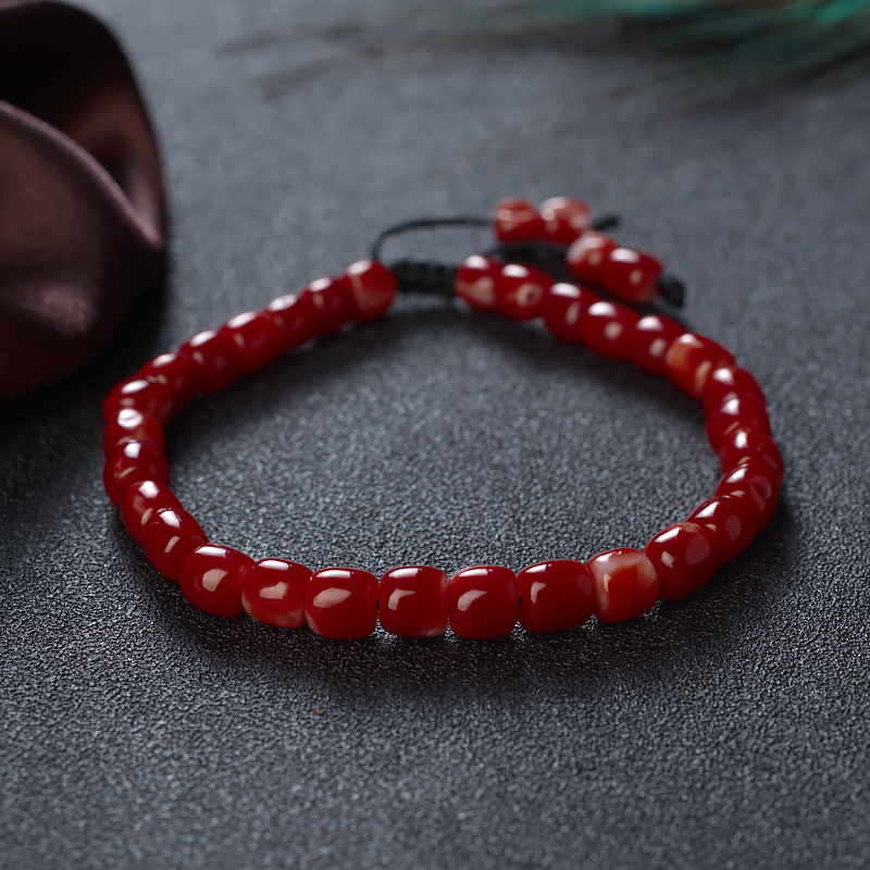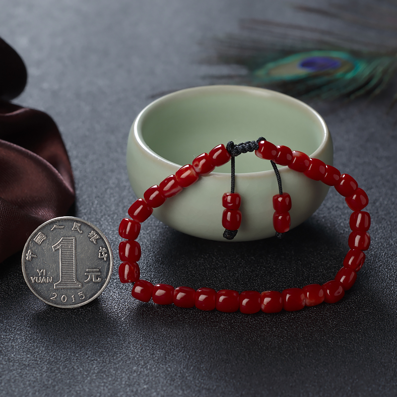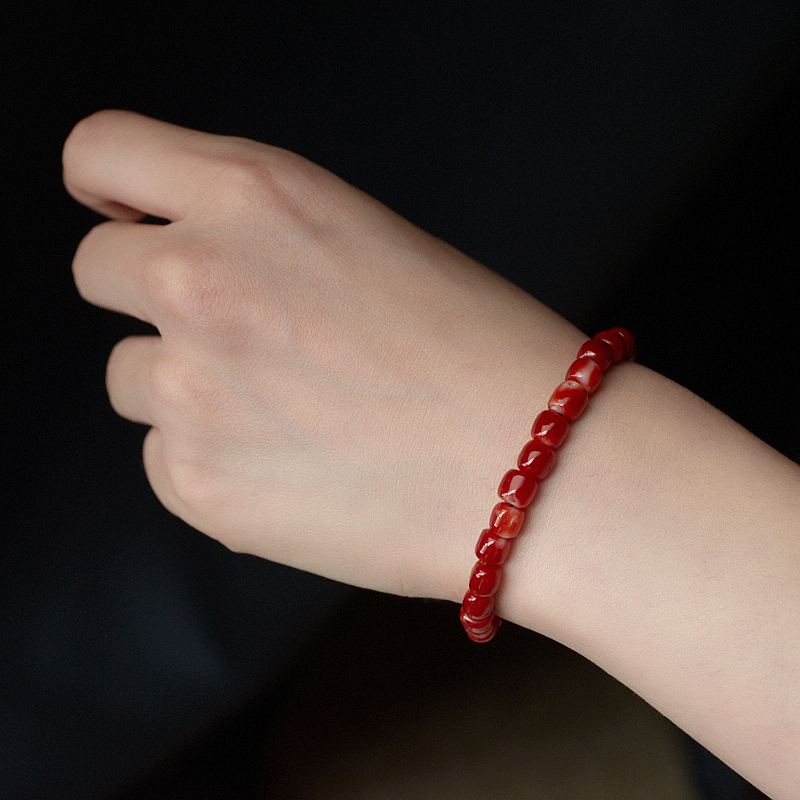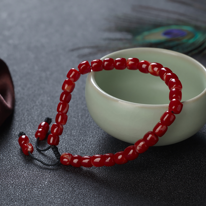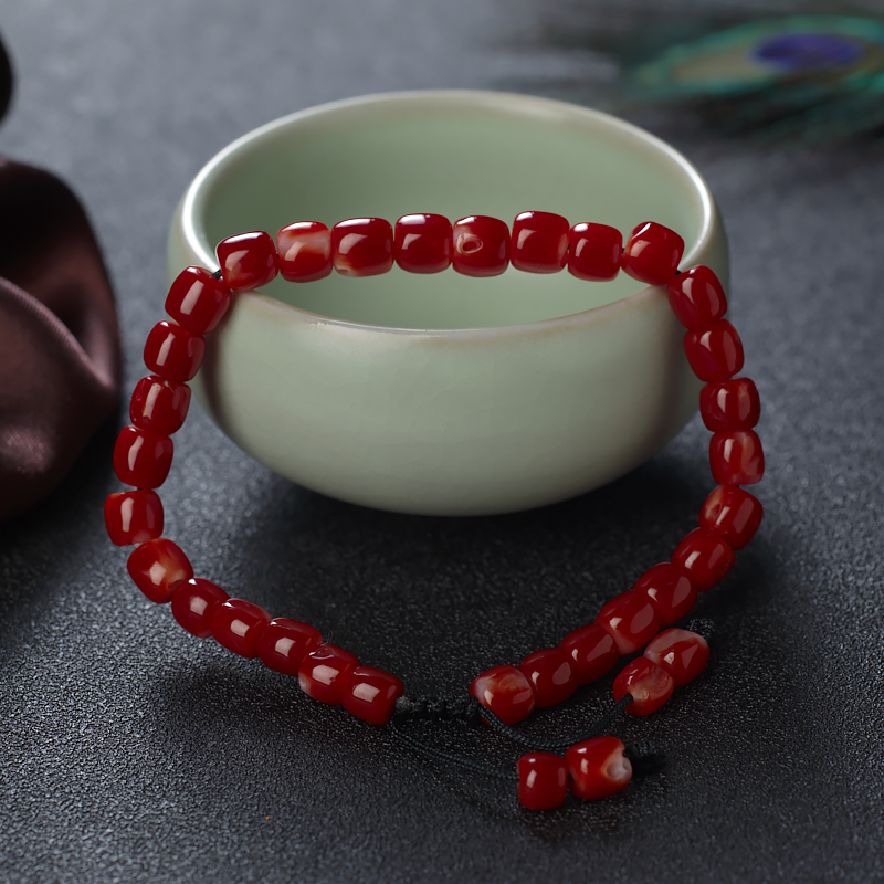 • 阿卡牛血红珊瑚桶珠单圈手串