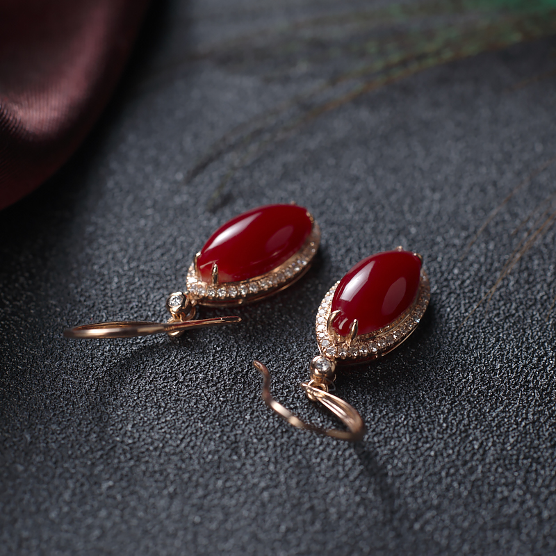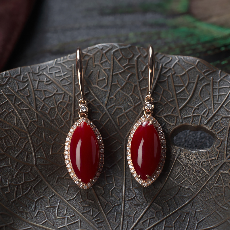 • [名  称] 18K阿卡牛血红珊瑚马眼形耳环