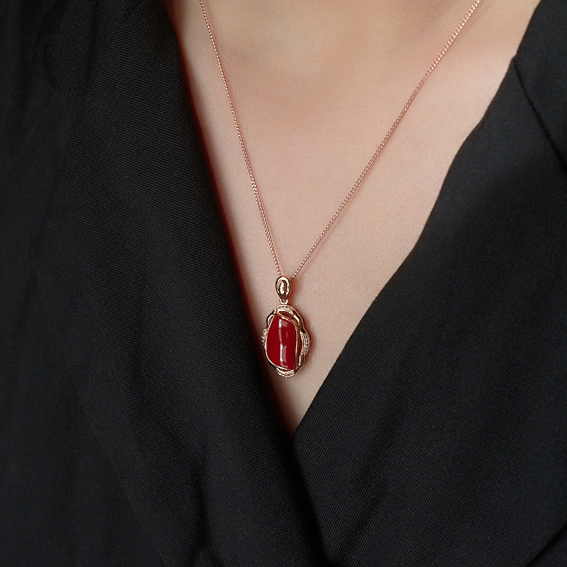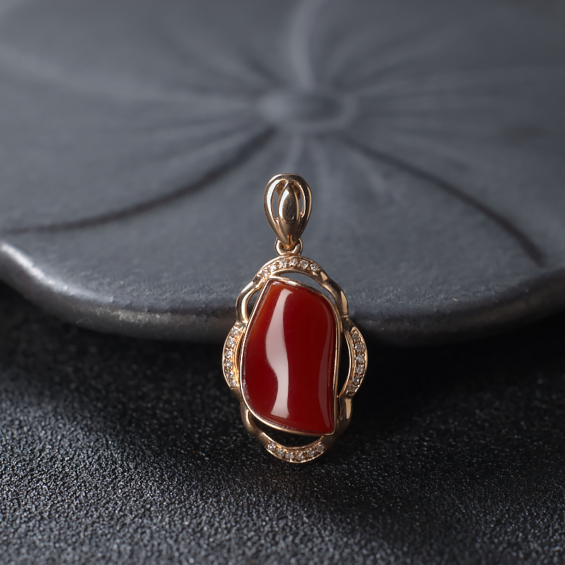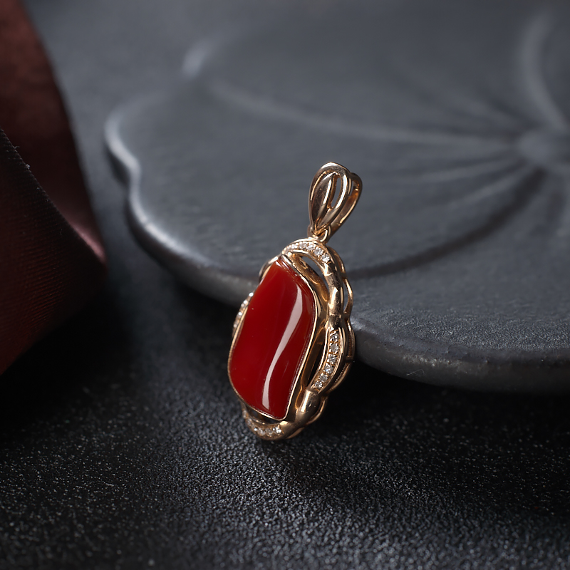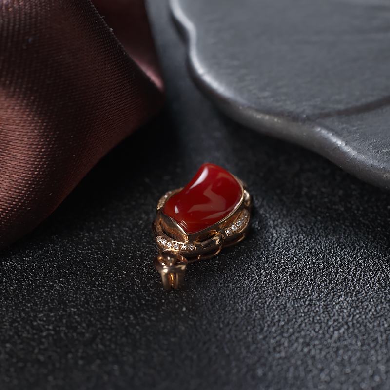 • [名  称] 18K阿卡牛血红珊瑚随形吊坠