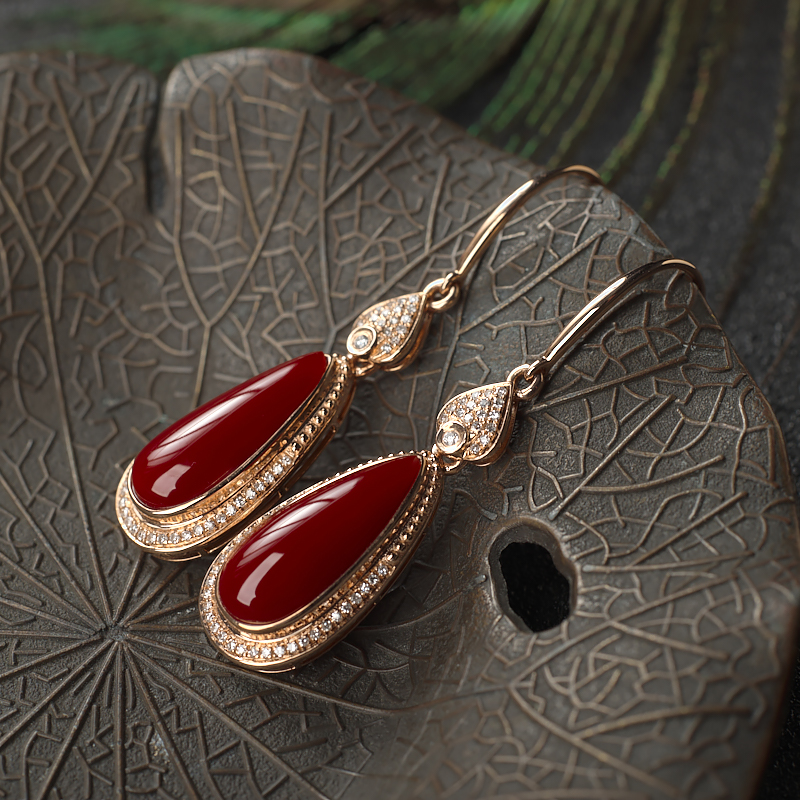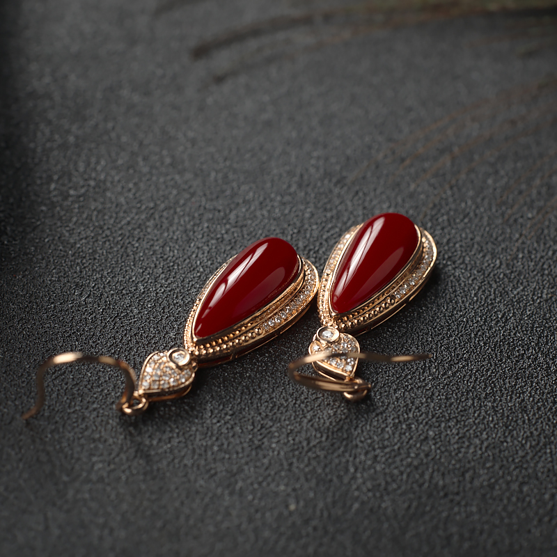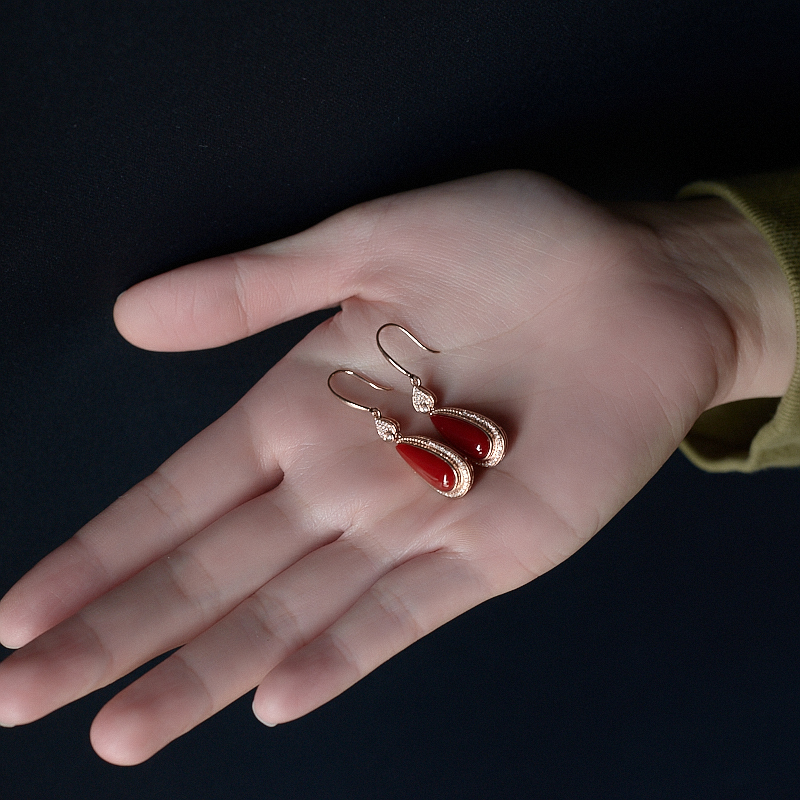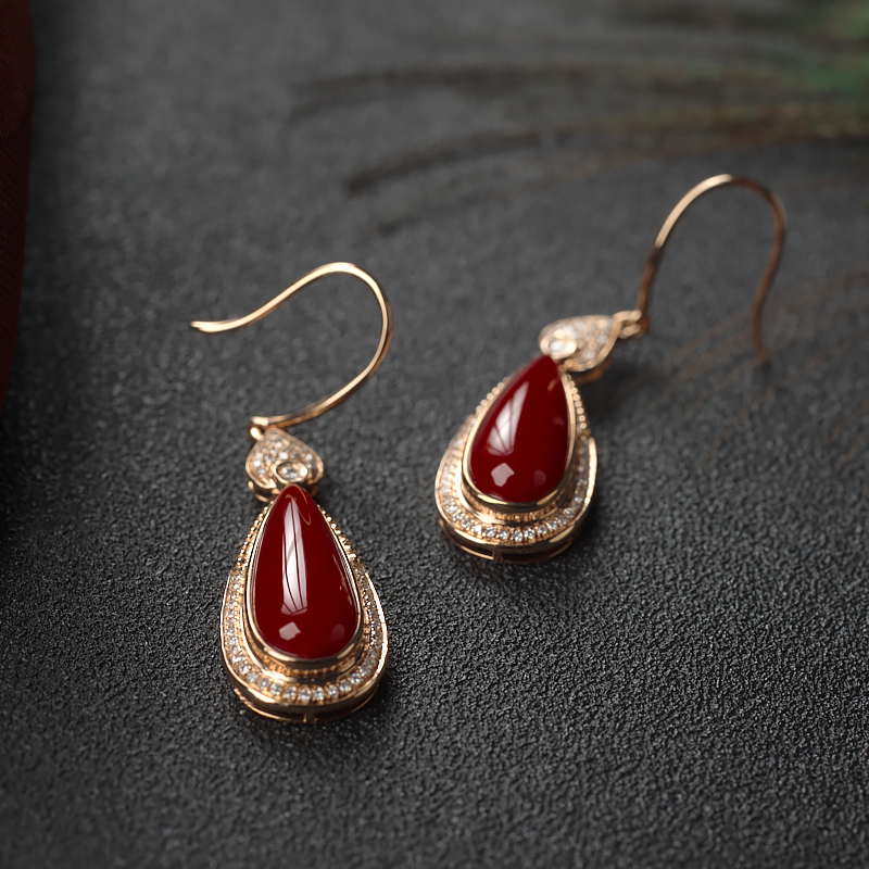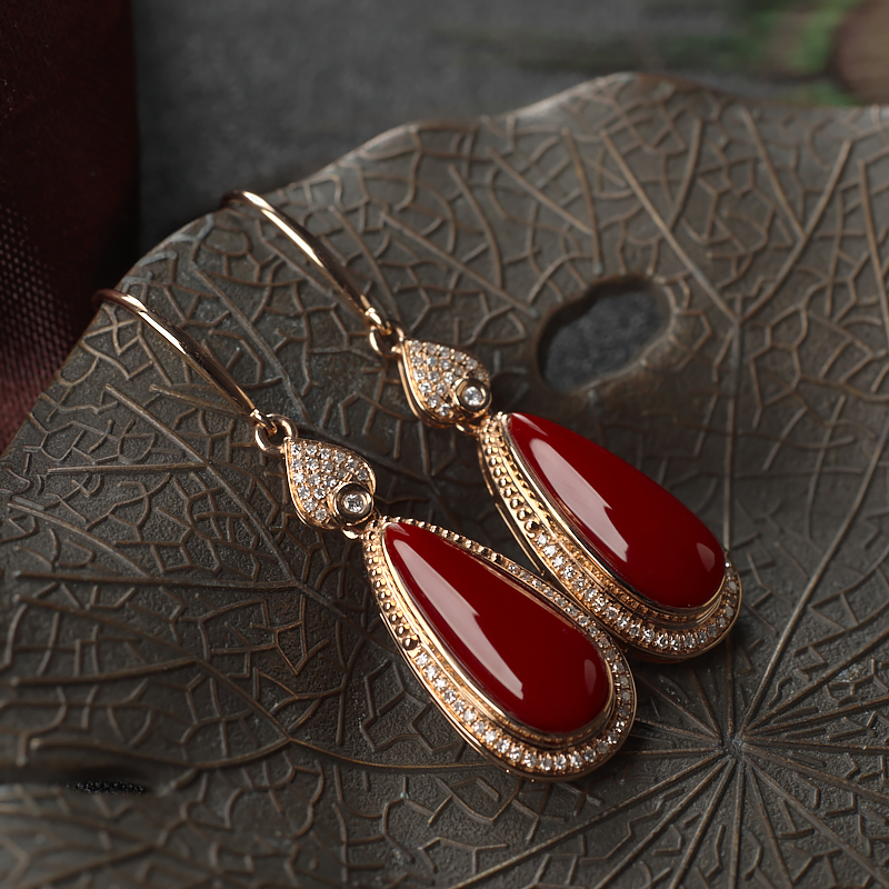 • [名  称] 18K阿卡牛血红珊瑚水滴耳环