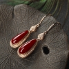 • 18K阿卡牛血红珊瑚水滴耳环