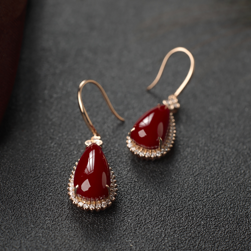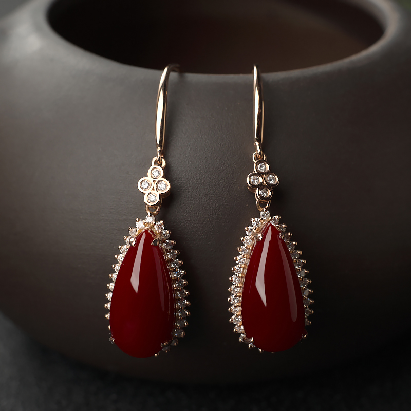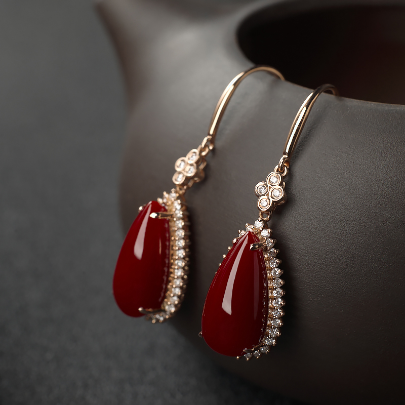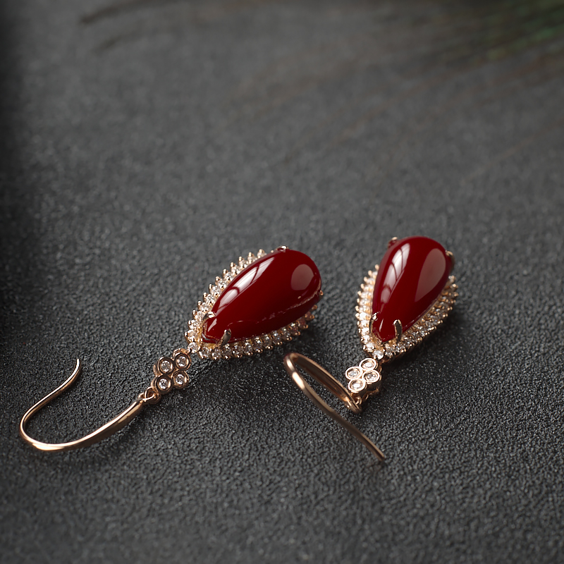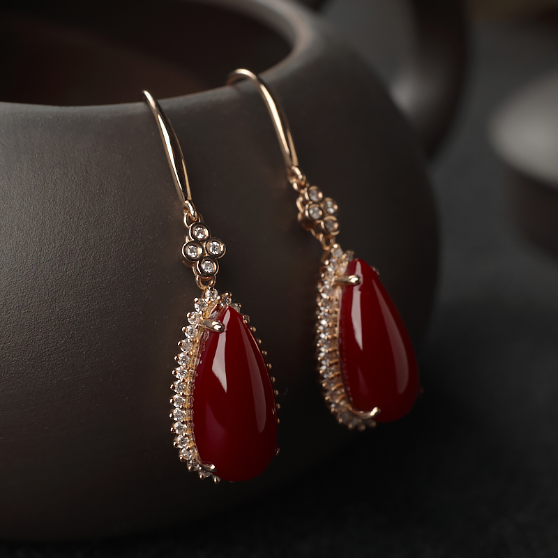 • [名  称] 18K阿卡牛血红珊瑚水滴耳环