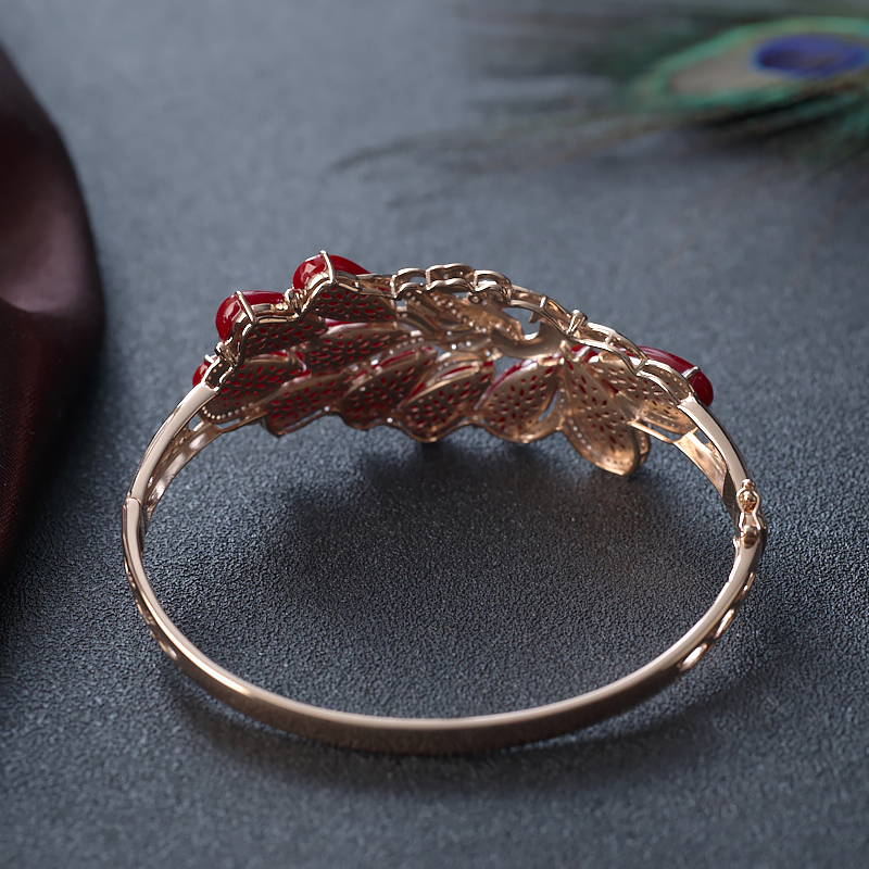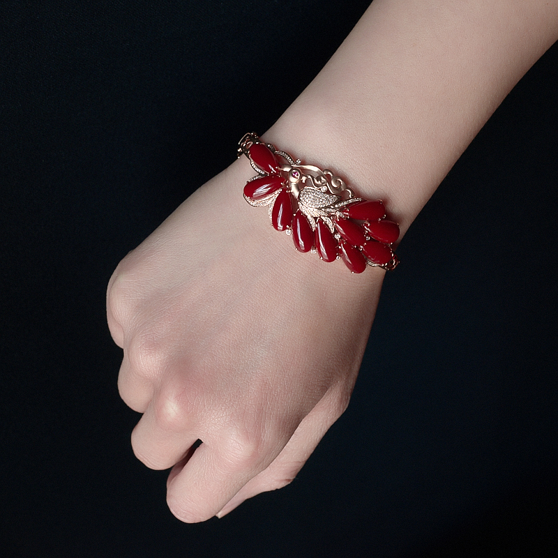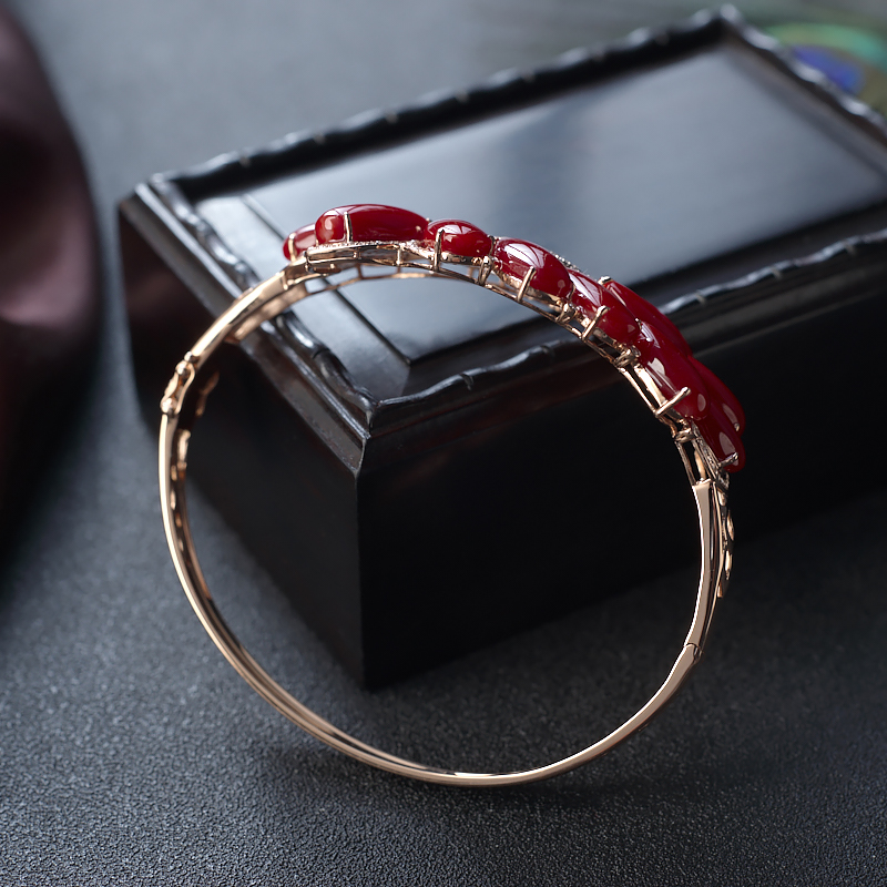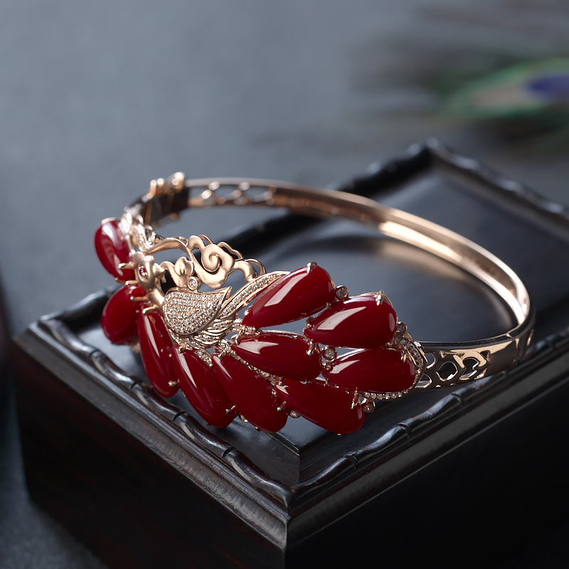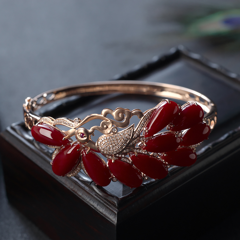 • 59mm18K阿卡牛血红珊瑚凤凰手镯