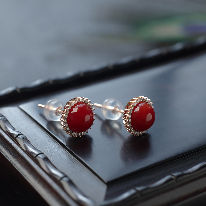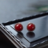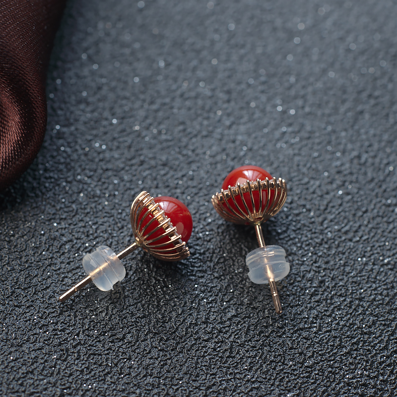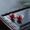• 18K阿卡牛血红珊瑚圆珠耳钉