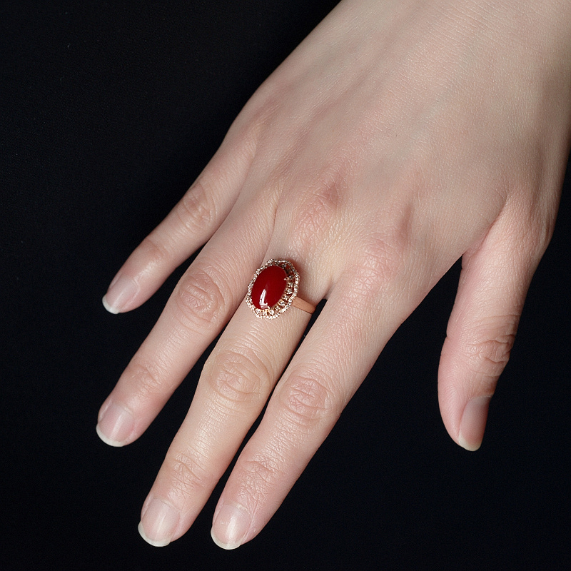 • [名  称] 18K阿卡牛血红珊瑚戒指/吊坠套装