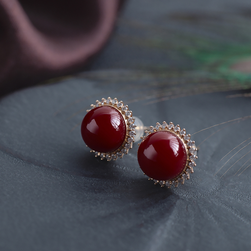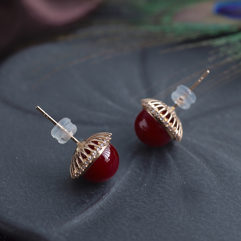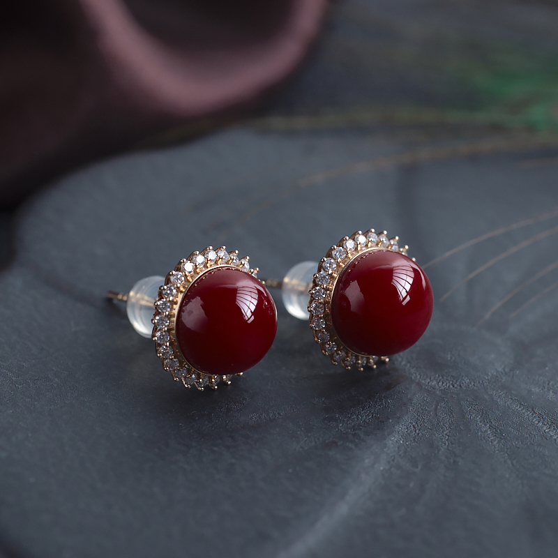• [名  称] 18K阿卡牛血红珊瑚圆珠耳钉
