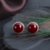 • 18K阿卡牛血红珊瑚圆珠耳钉