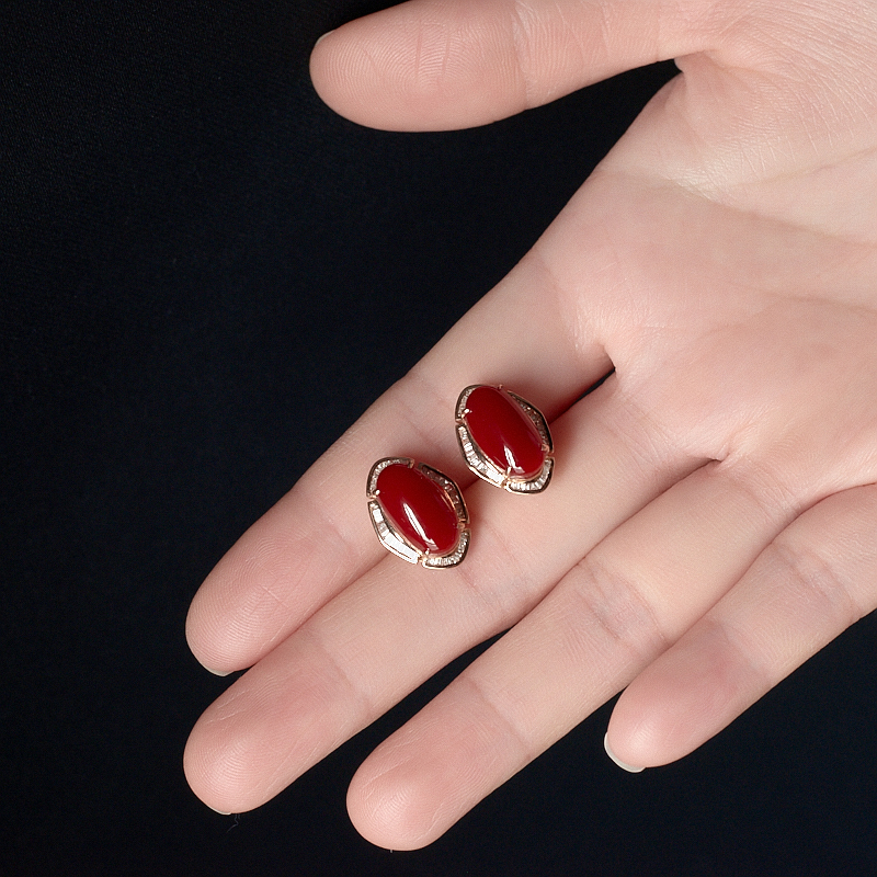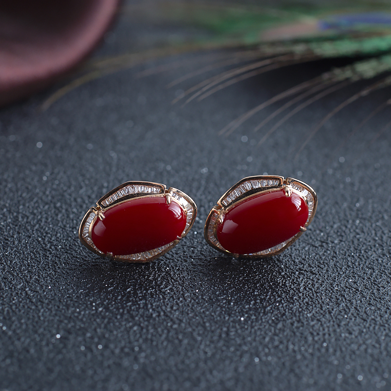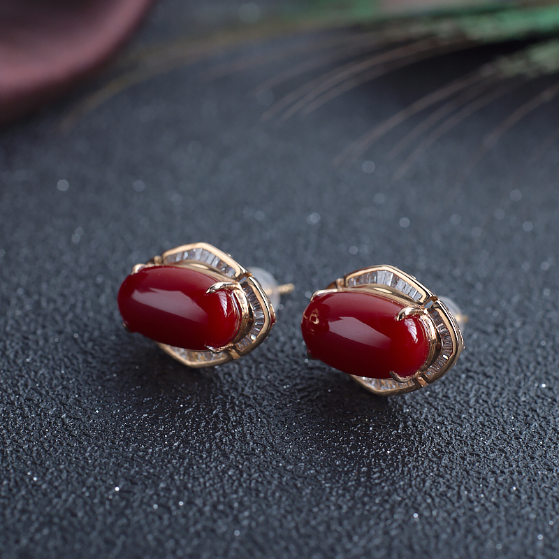 • [名  称] 18K阿卡牛血红珊瑚耳钉