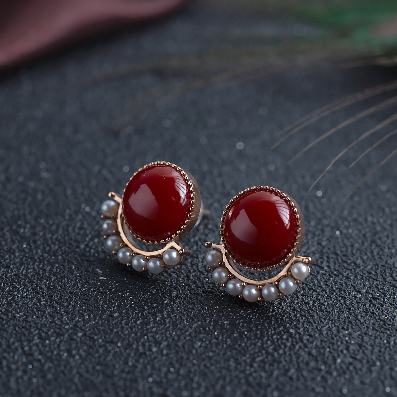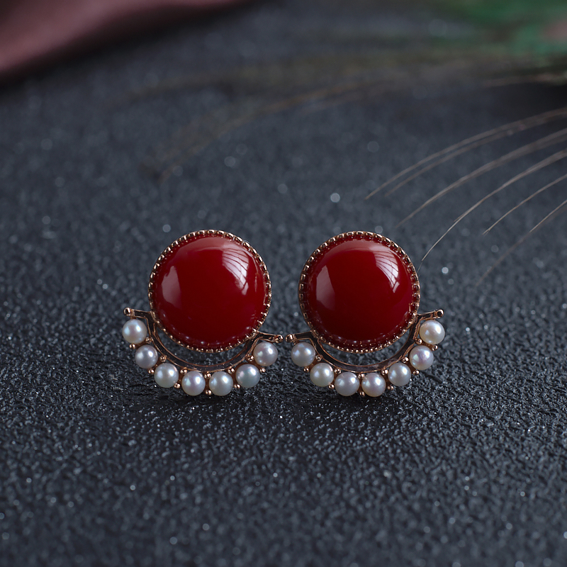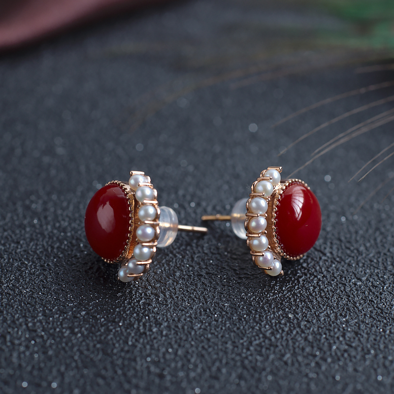 • 18K阿卡牛血红珊瑚耳钉