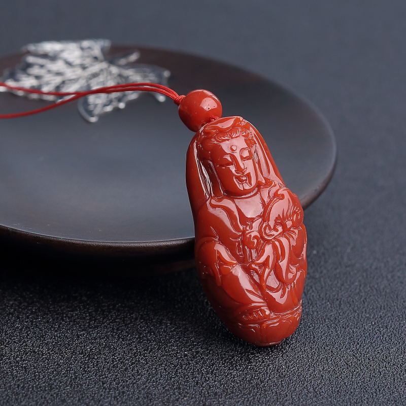 • 阿卡正红珊瑚观音吊坠