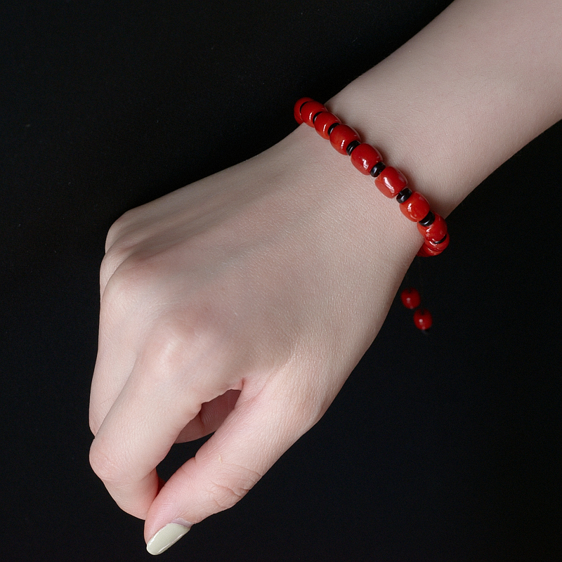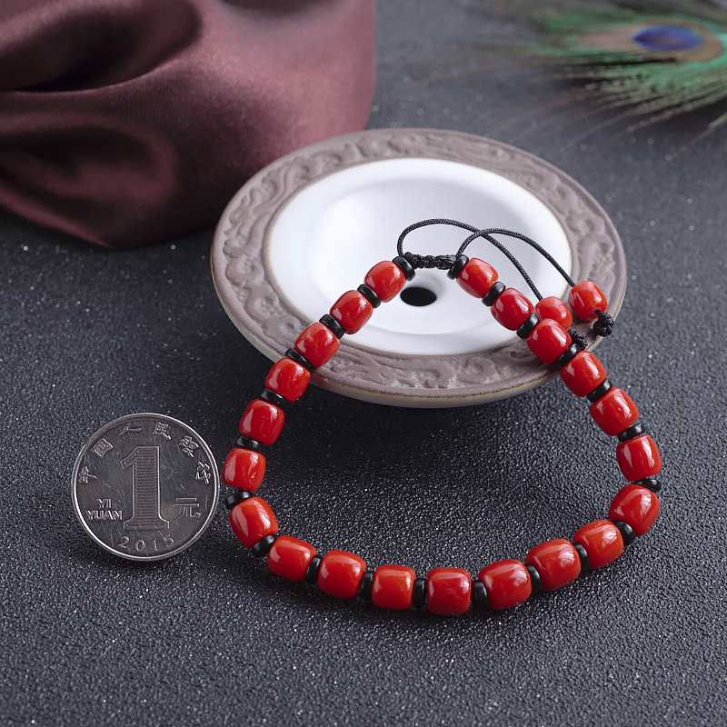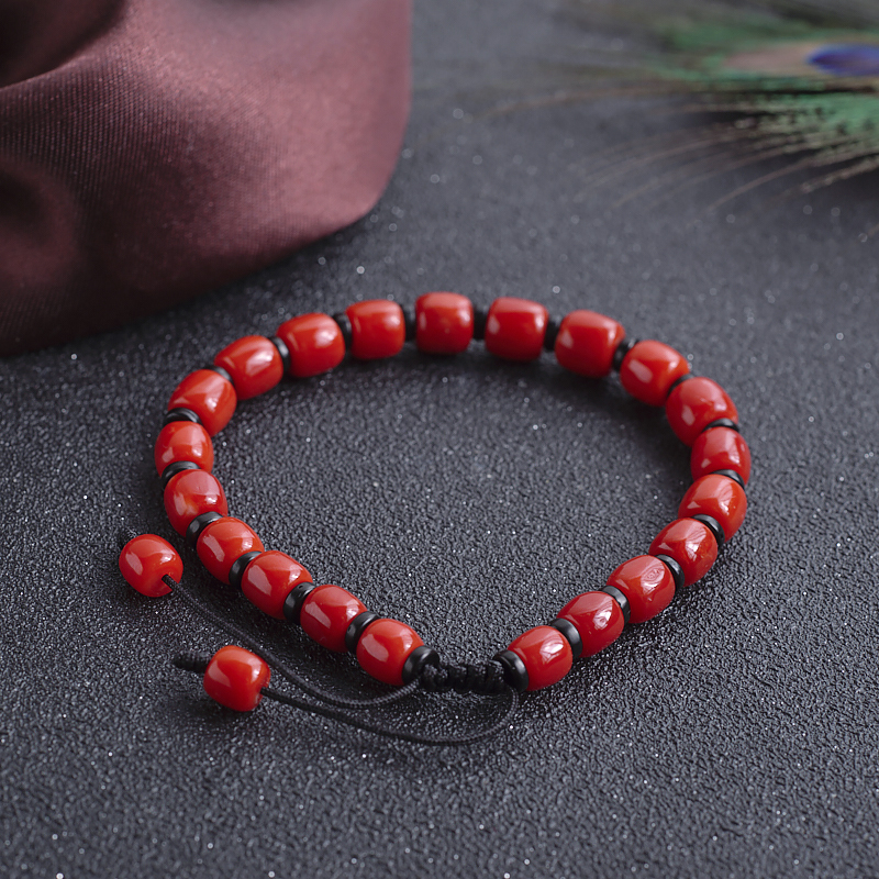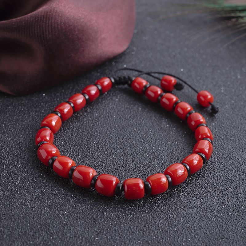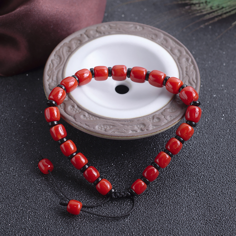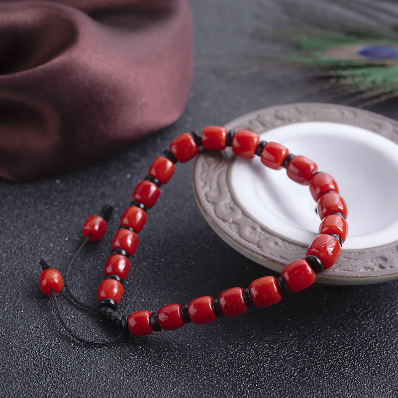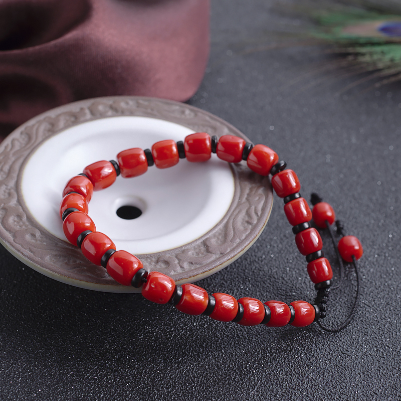 • 阿卡牛血红珊瑚桶珠单圈手串