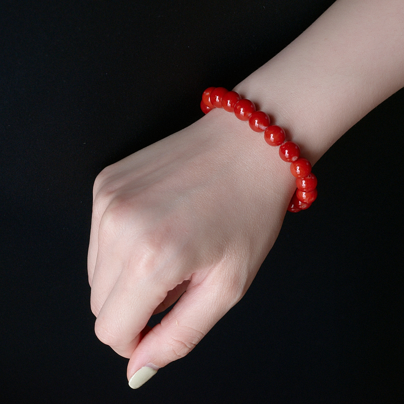 • 9.5mm阿卡牛血红珊瑚单圈手串