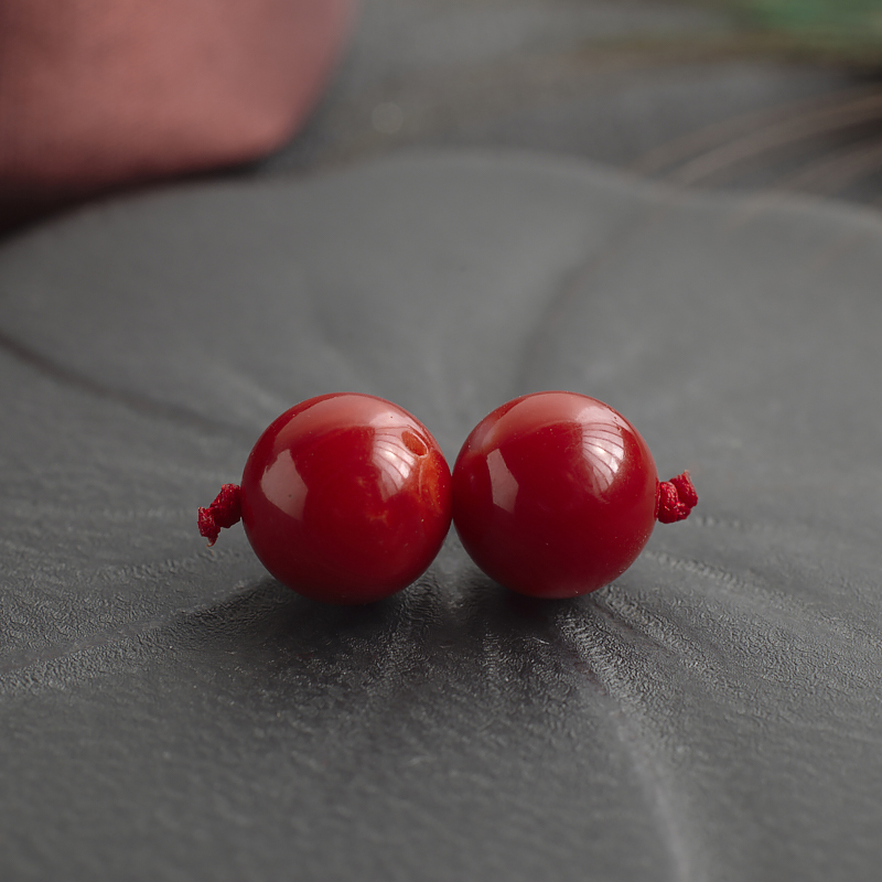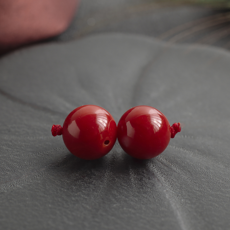 • [名  称] 11.5mm阿卡牛血红珊瑚圆珠(两件)