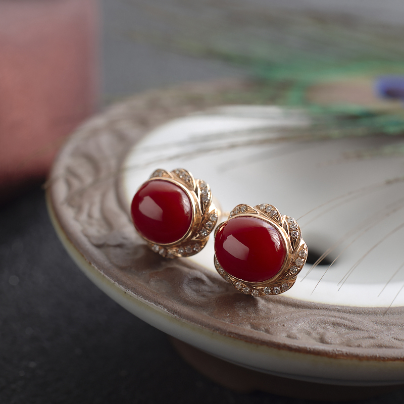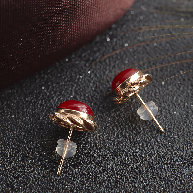 • [名  称] 18K阿卡牛血红珊瑚耳钉
