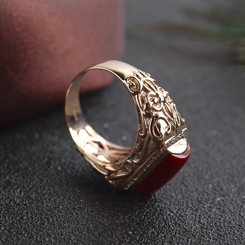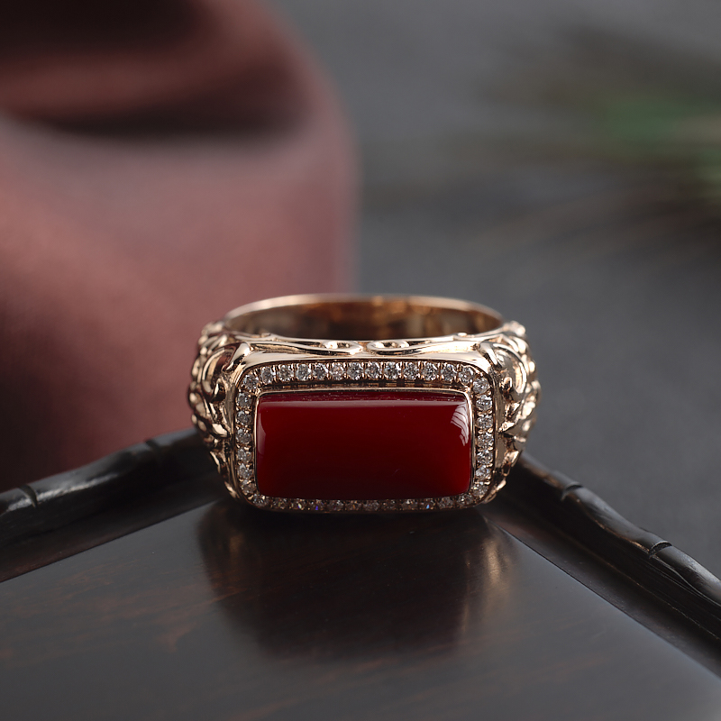 • [名  称] 18K阿卡牛血红珊瑚方形戒指