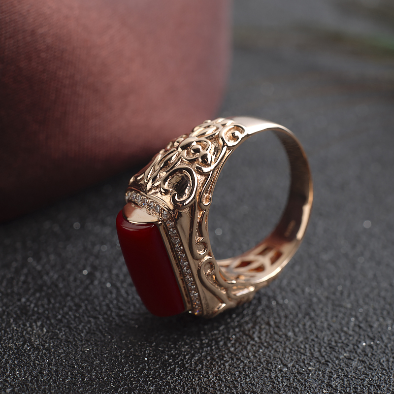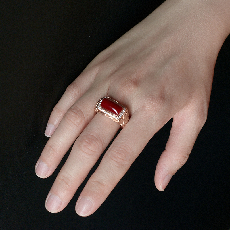 • 18K阿卡牛血红珊瑚方形戒指