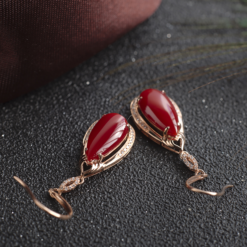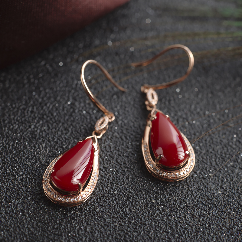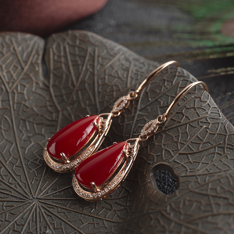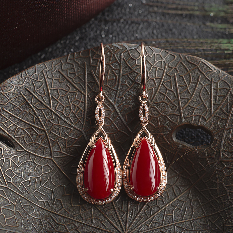 • [名  称] 18K阿卡牛血红珊瑚水滴耳环