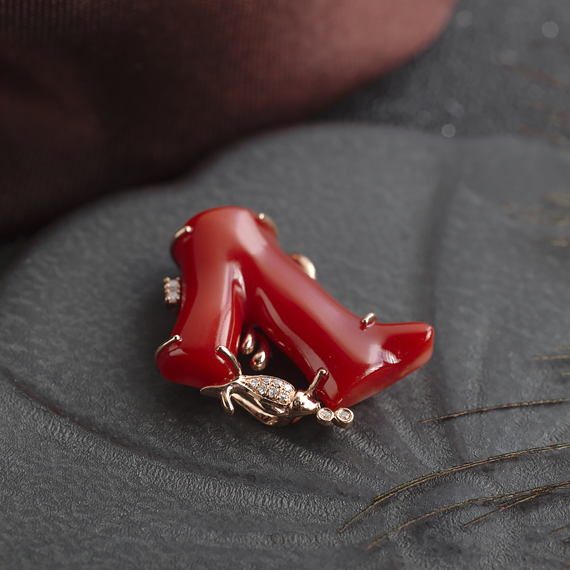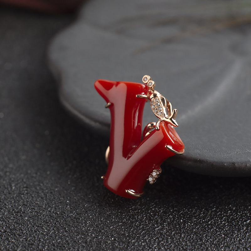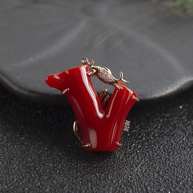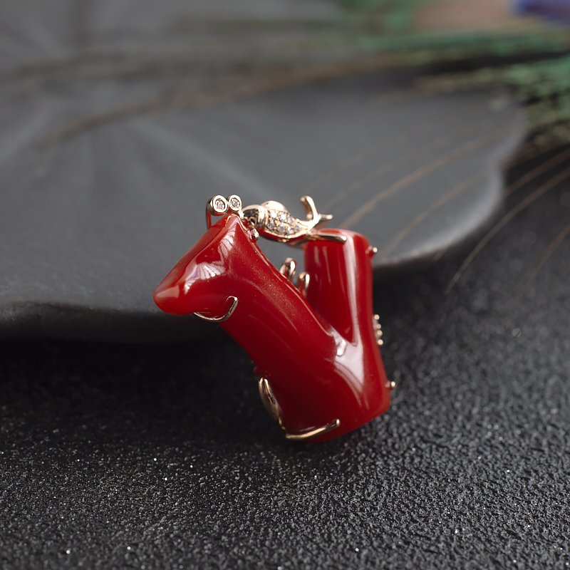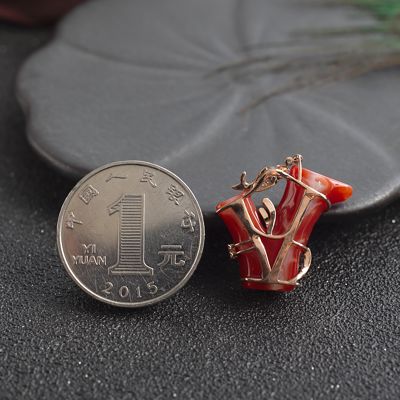 • 18K阿卡牛血红珊瑚树枝吊坠