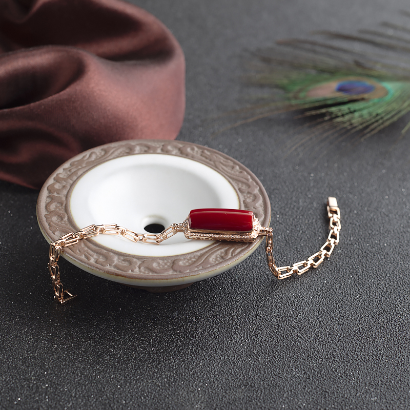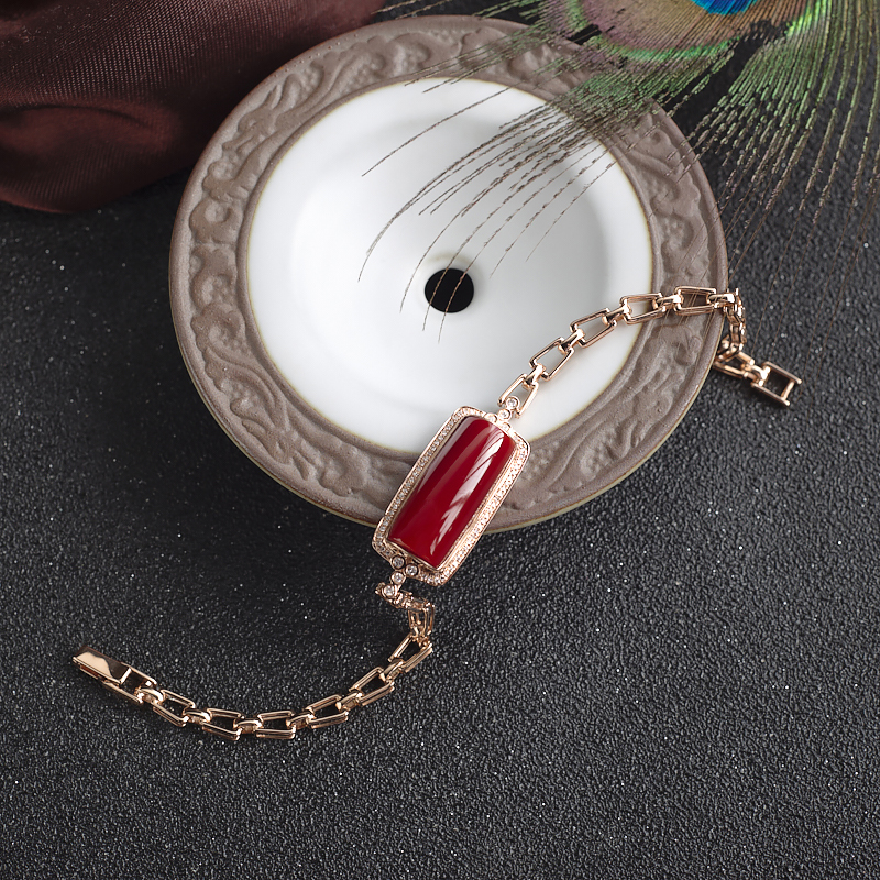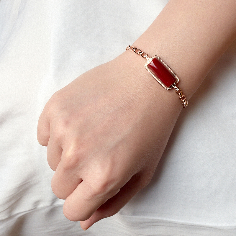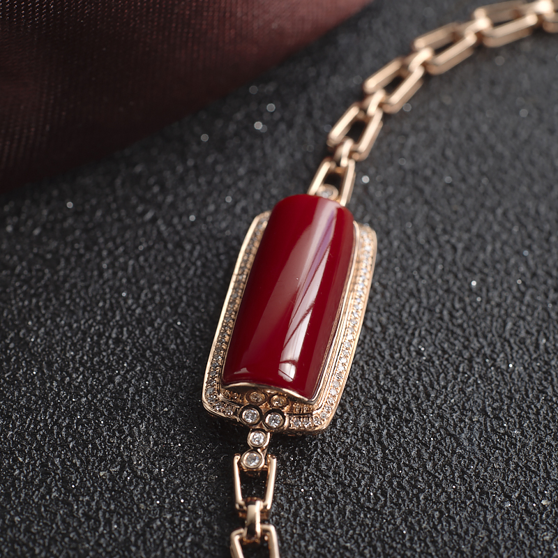 • 18K阿卡牛血红珊瑚方形手链