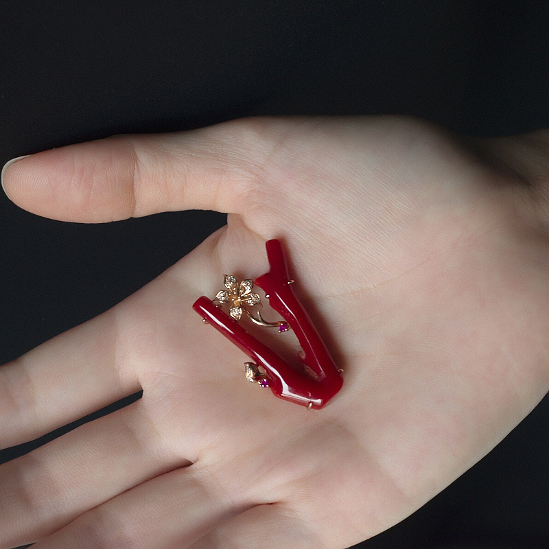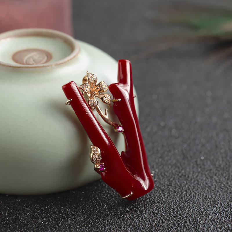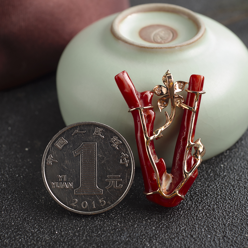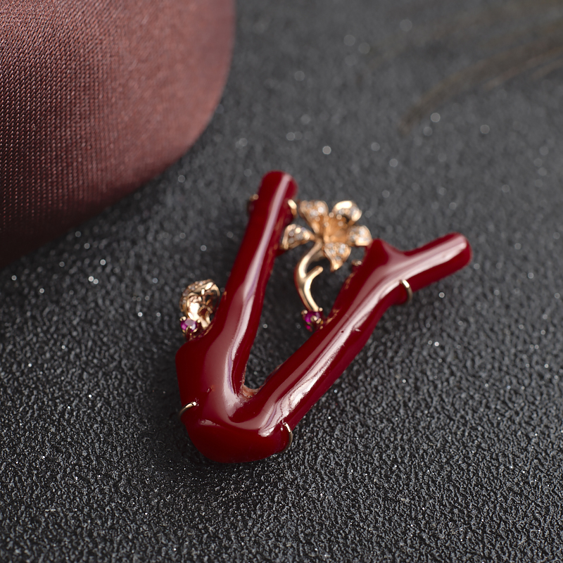 • 18K阿卡牛血红珊瑚树枝吊坠