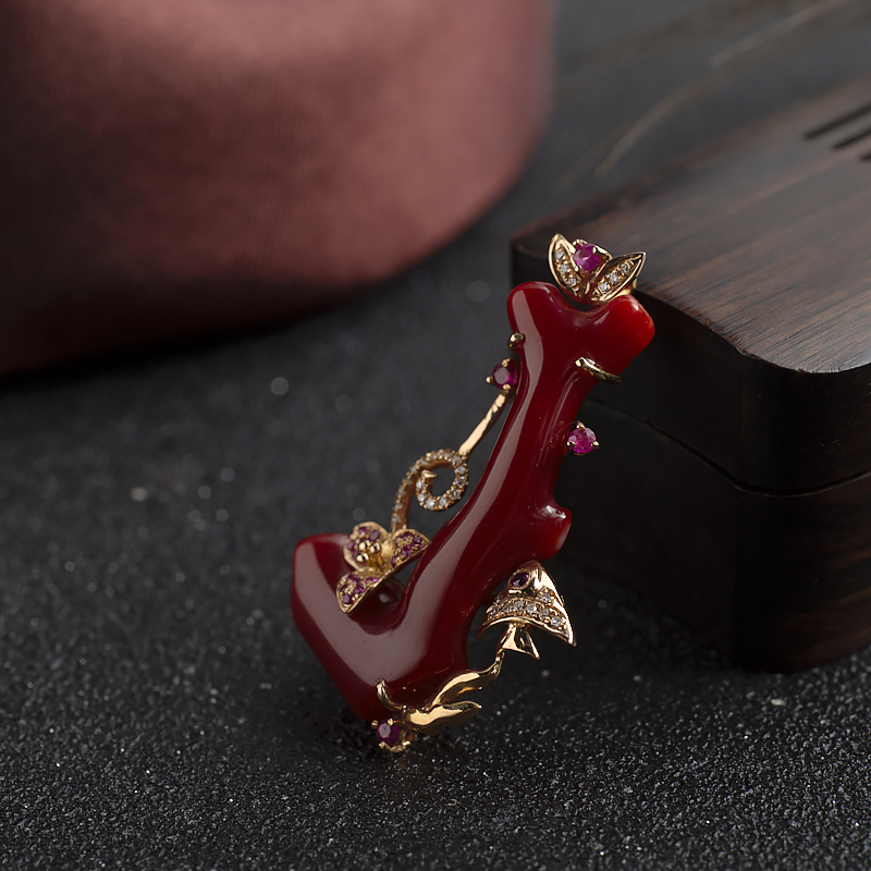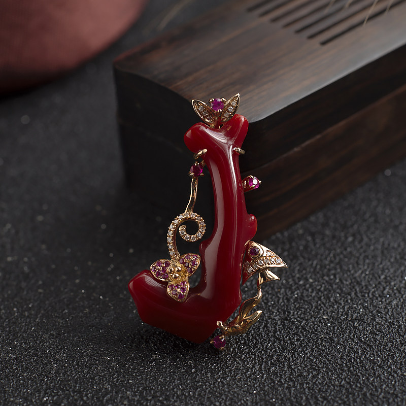 • 18K阿卡牛血红珊瑚树枝吊坠