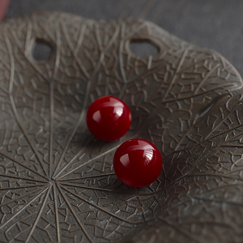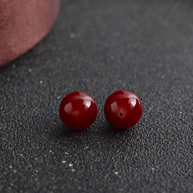 • 9.5mm阿卡牛血红珊瑚圆珠(两件)