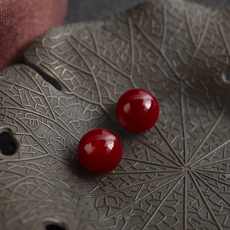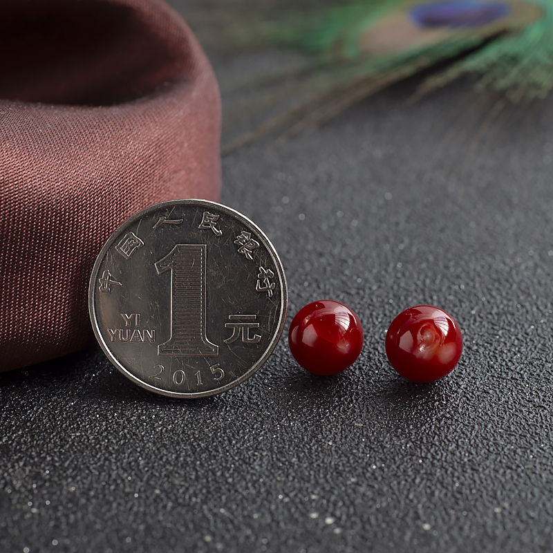 • [名  称] 9.5mm阿卡牛血红珊瑚圆珠(两件)