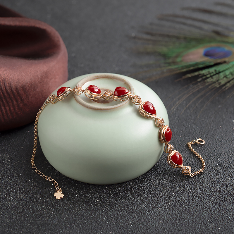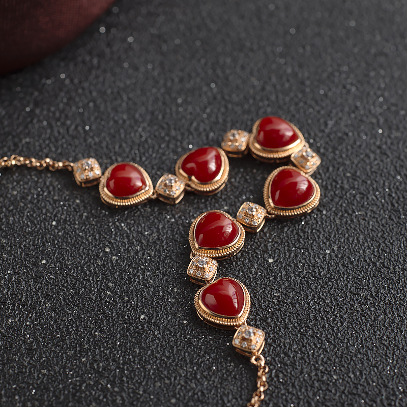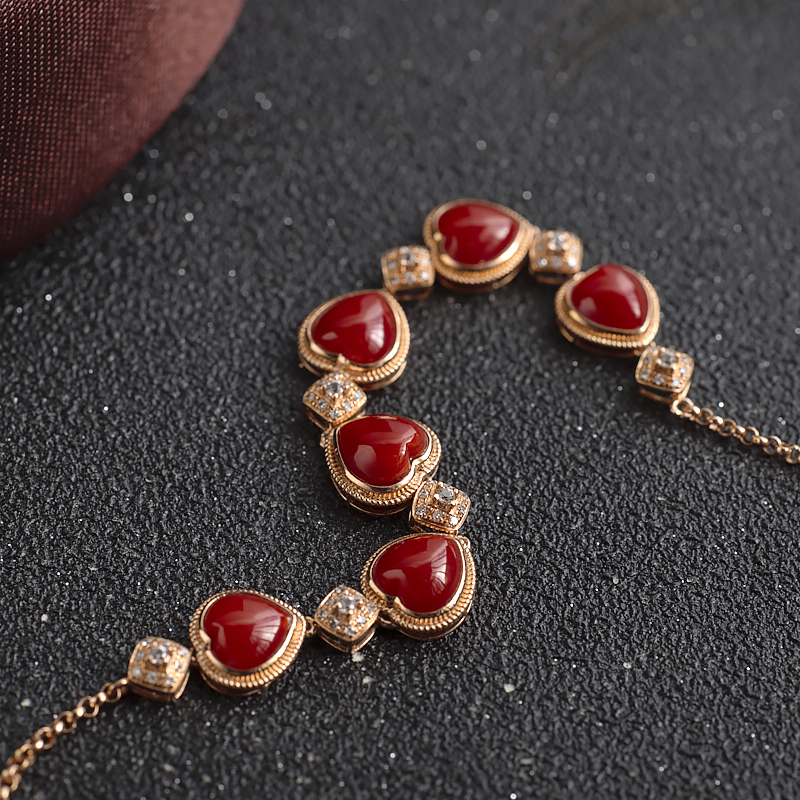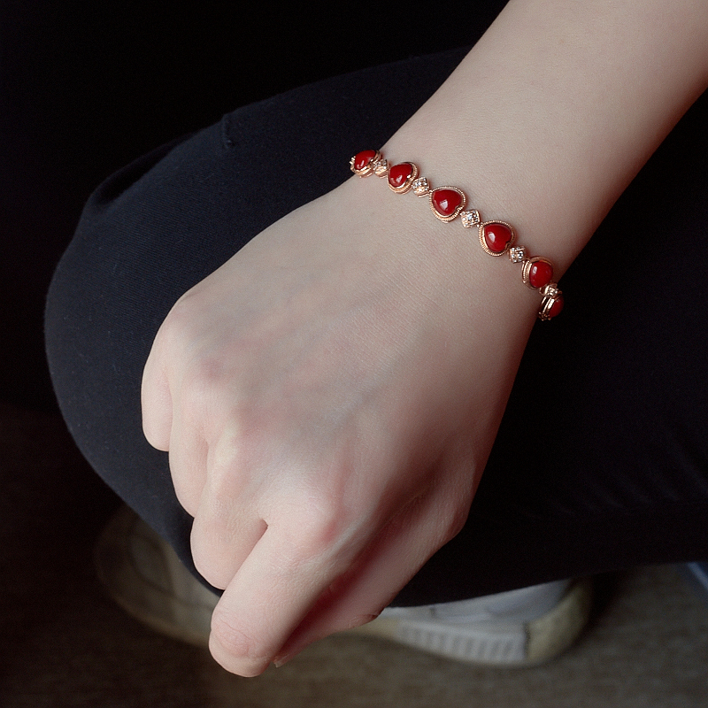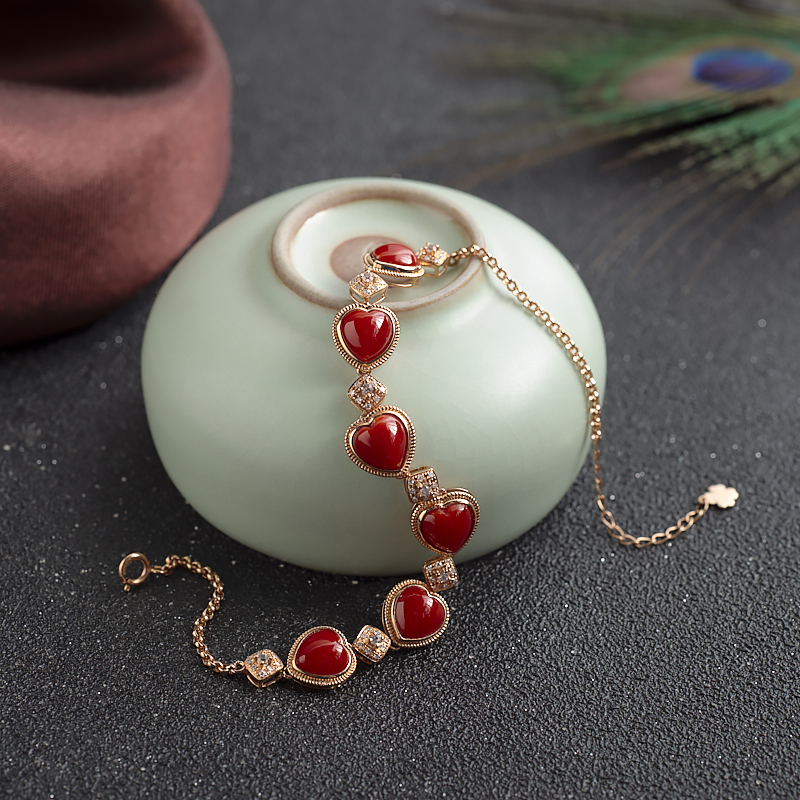 • [名  称] 18K阿卡牛血红珊瑚心形手链