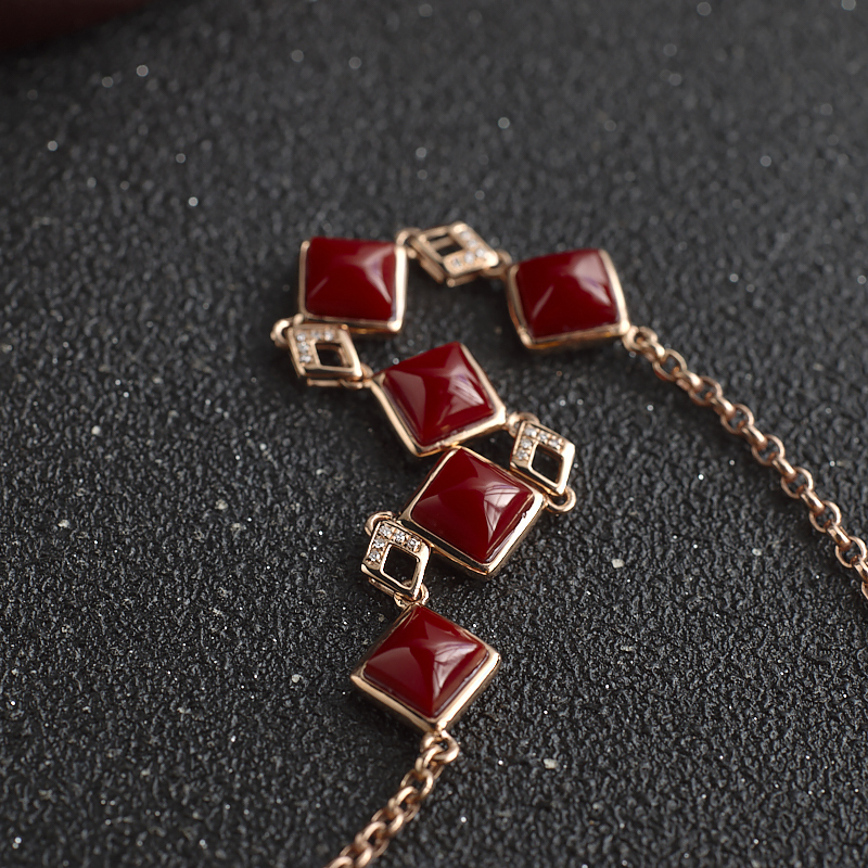• [名  称] 18K阿卡牛血红珊瑚方形手链