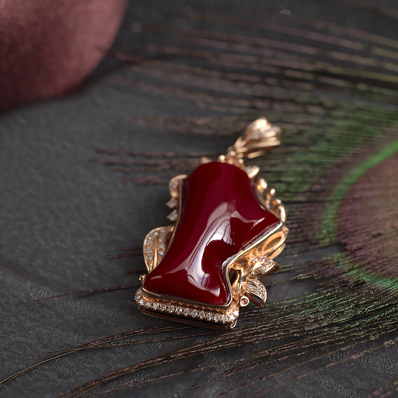 • [名  称] 18K阿卡牛血红珊瑚随形吊坠