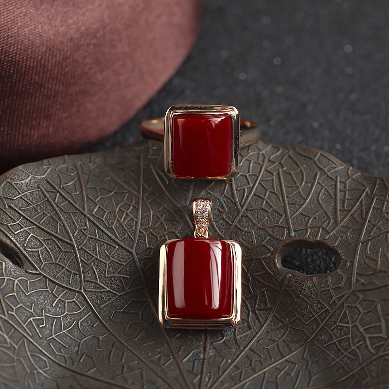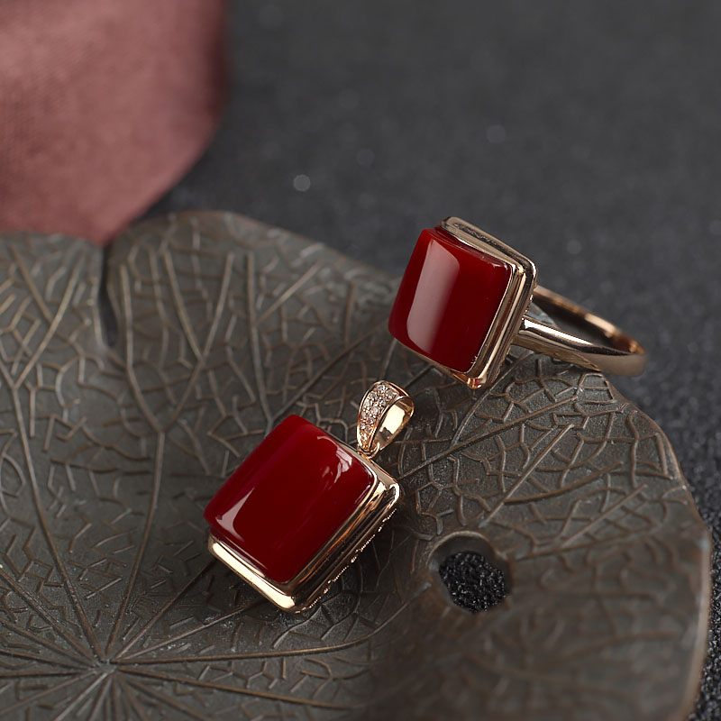 • [名  称] 18K阿卡牛血红珊瑚方形戒指/吊坠套装