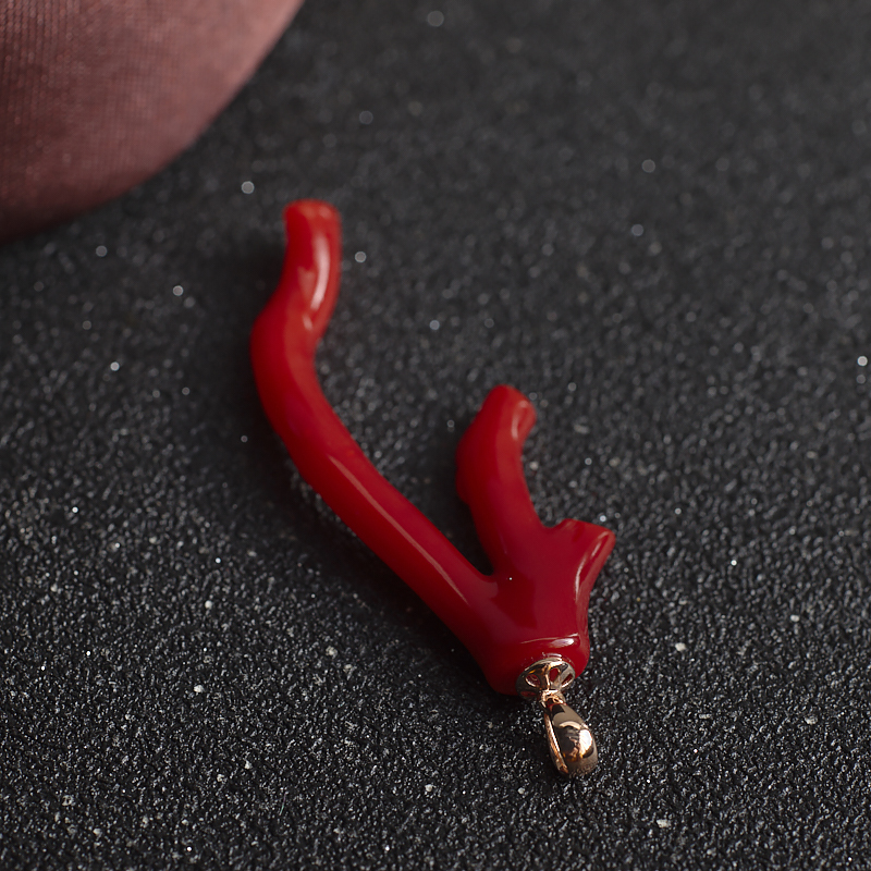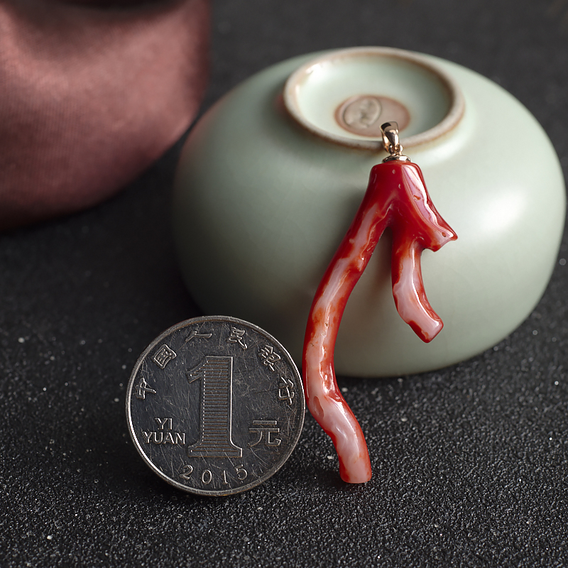 • 18K阿卡牛血红珊瑚树枝吊坠