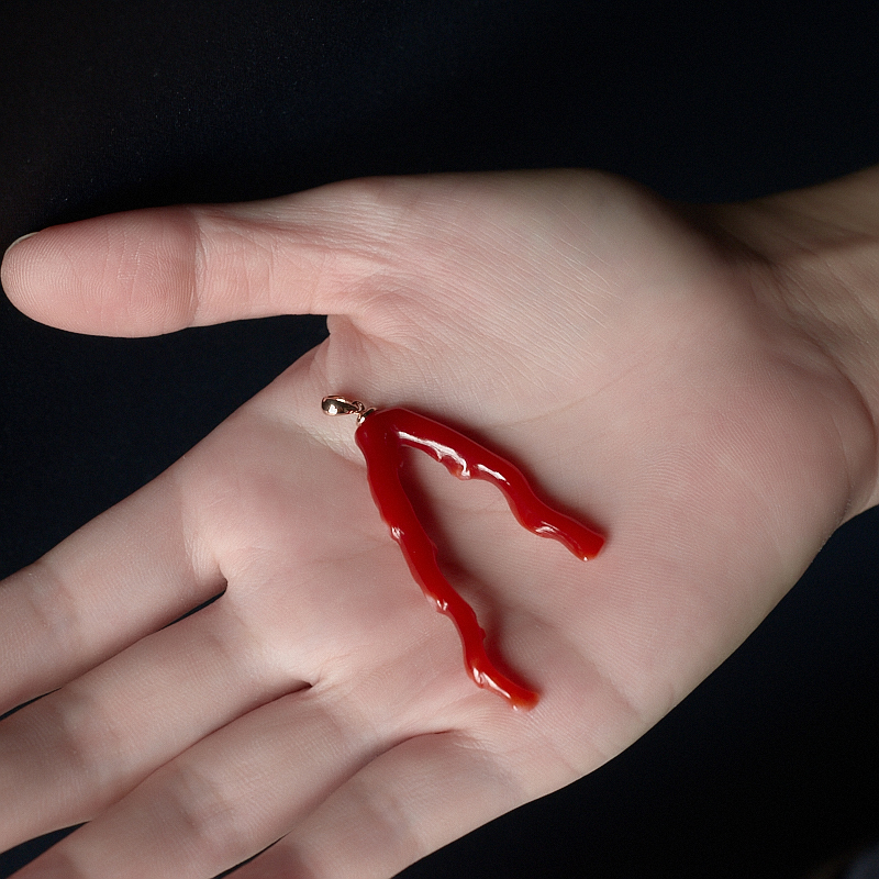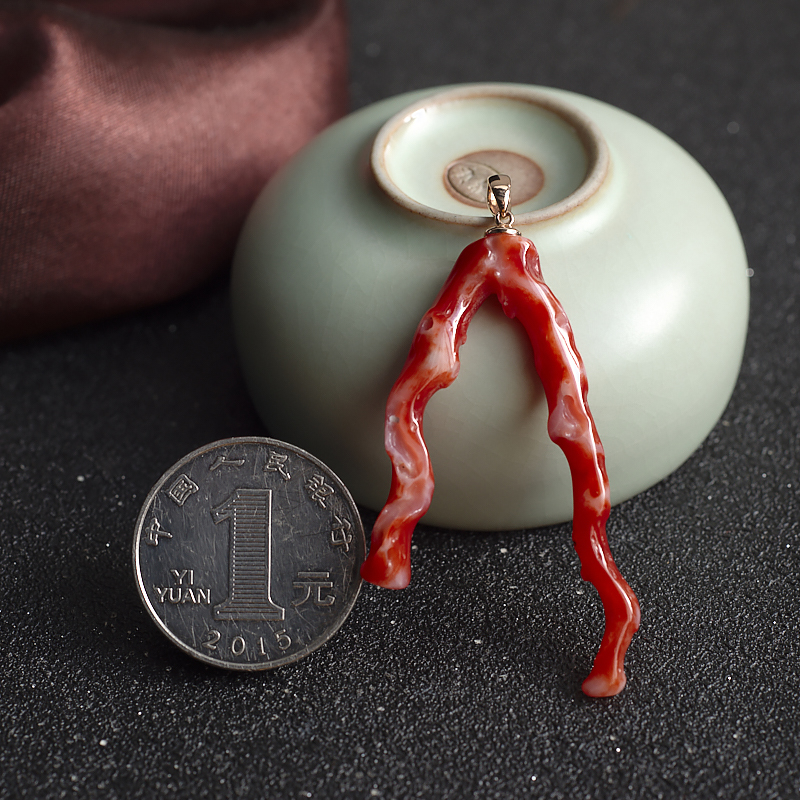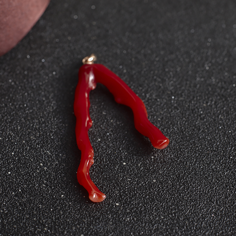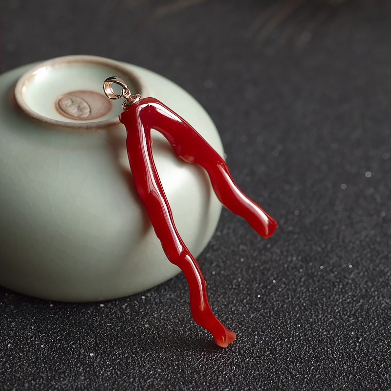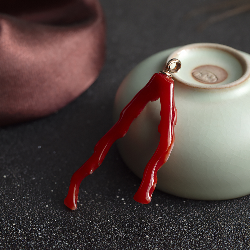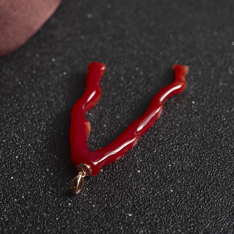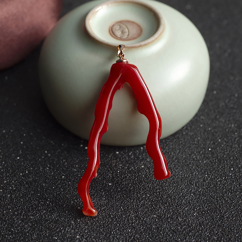 • 18K阿卡牛血红珊瑚树枝吊坠