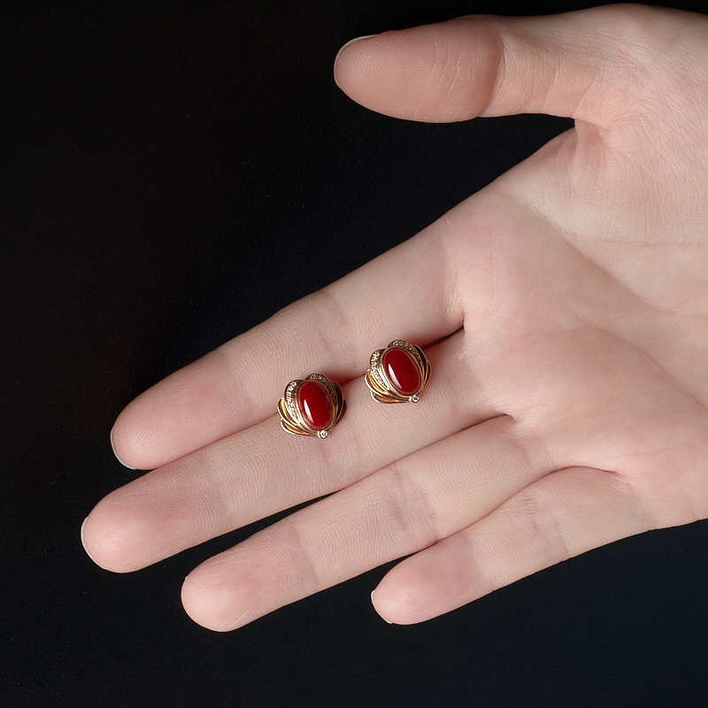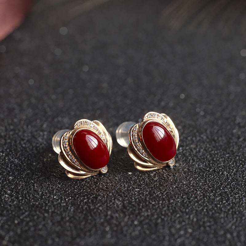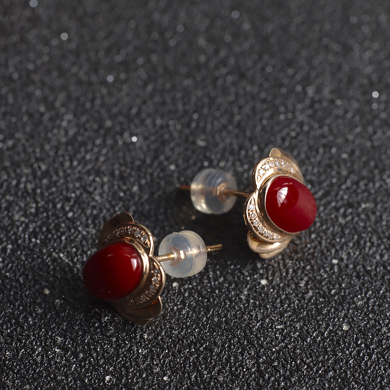 • [名  称] 18K阿卡牛血红珊瑚耳钉