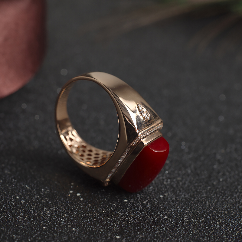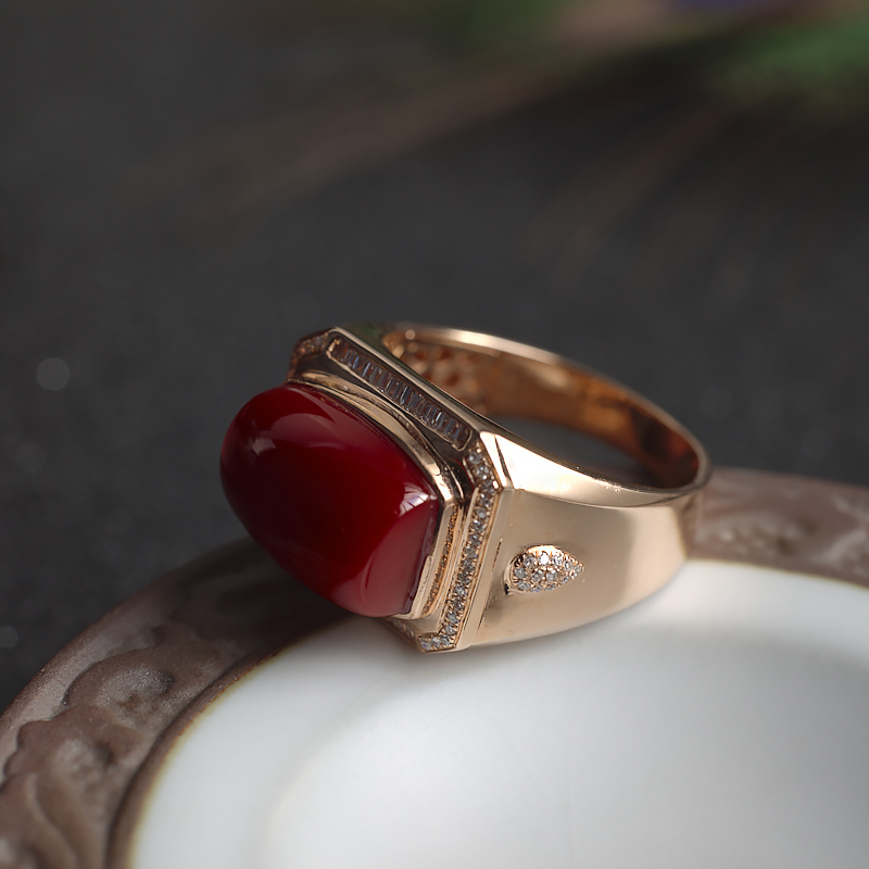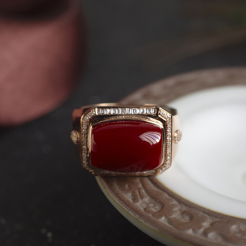 • [名  称] 18K阿卡牛血红珊瑚方形戒指