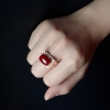 • 18K阿卡牛血红珊瑚方形戒指