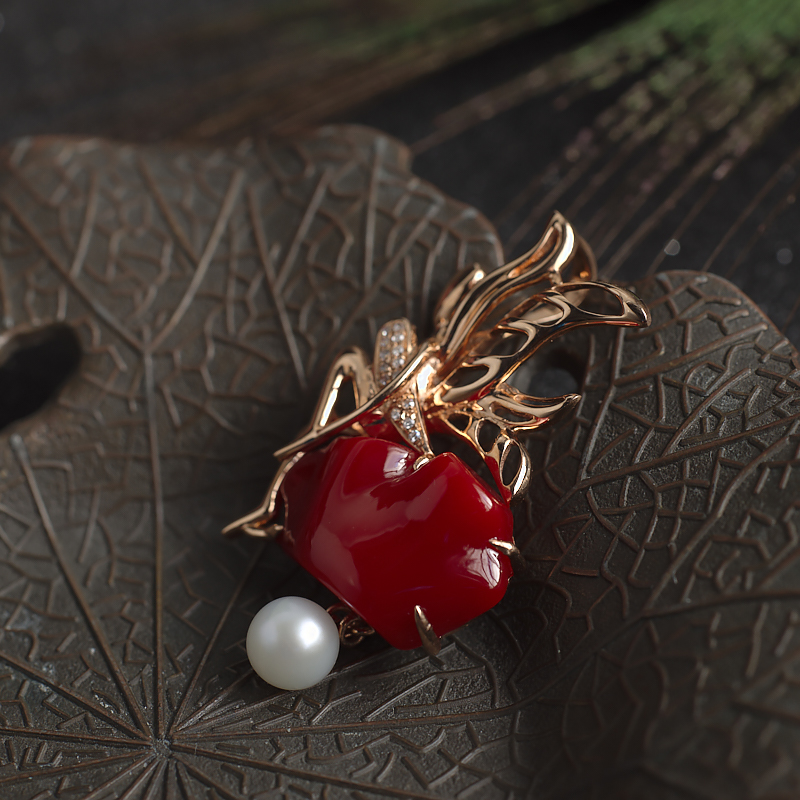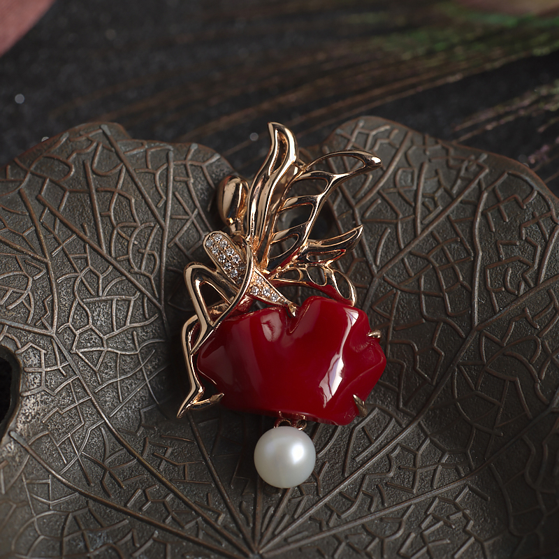 • 18K阿卡牛血红珊瑚小精灵吊坠