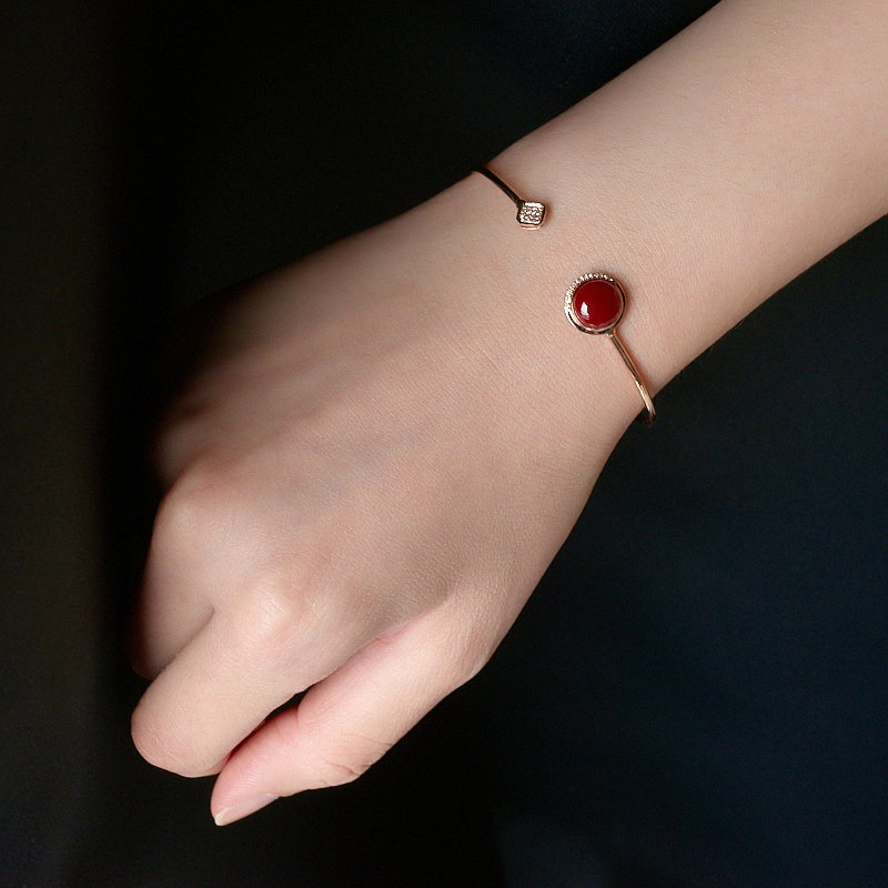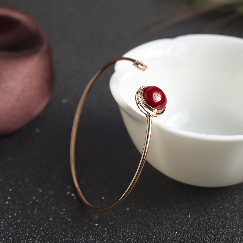 • 57mm18K阿卡牛血红珊瑚圆形手镯