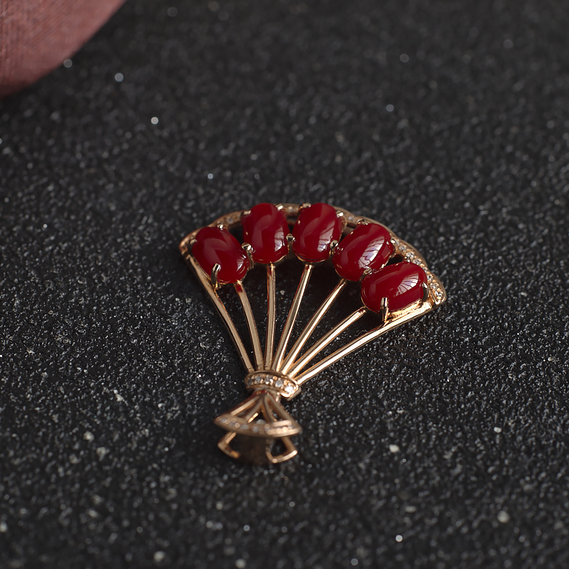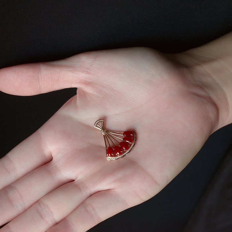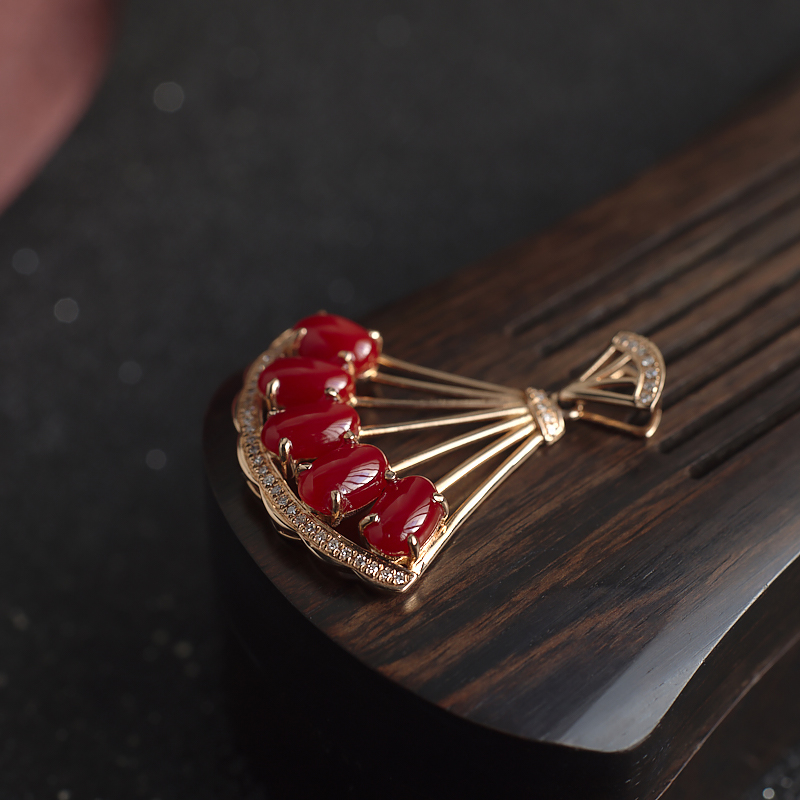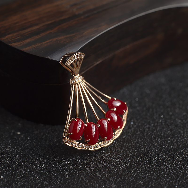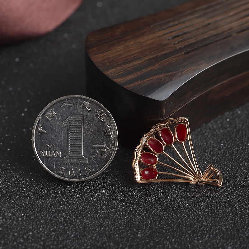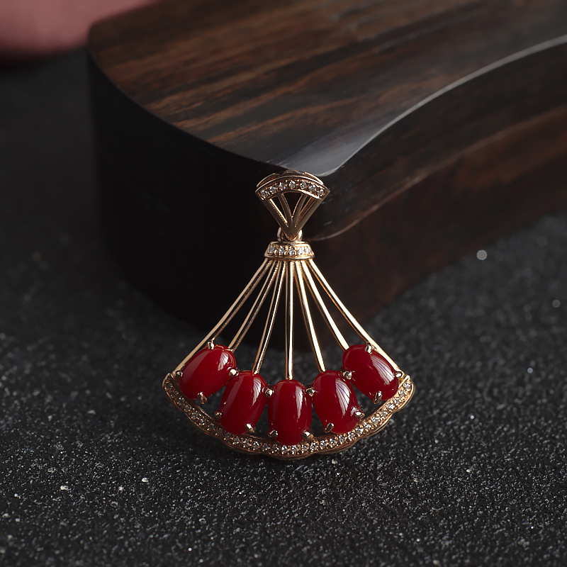 • 18K阿卡牛血红珊瑚扇子吊坠